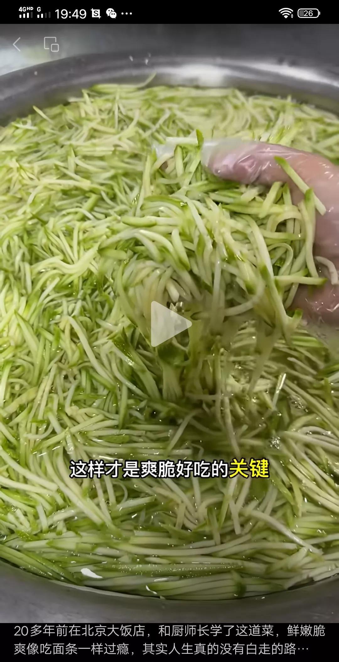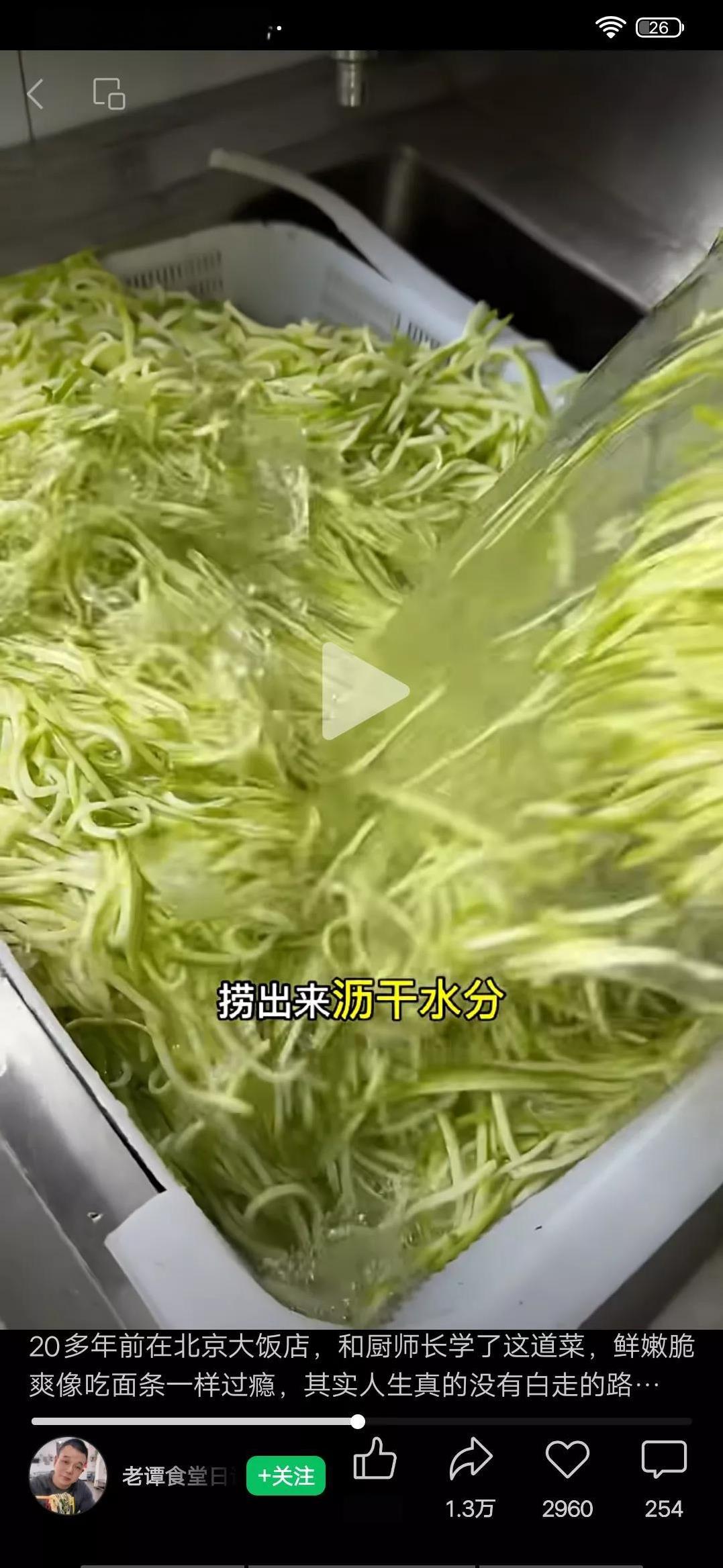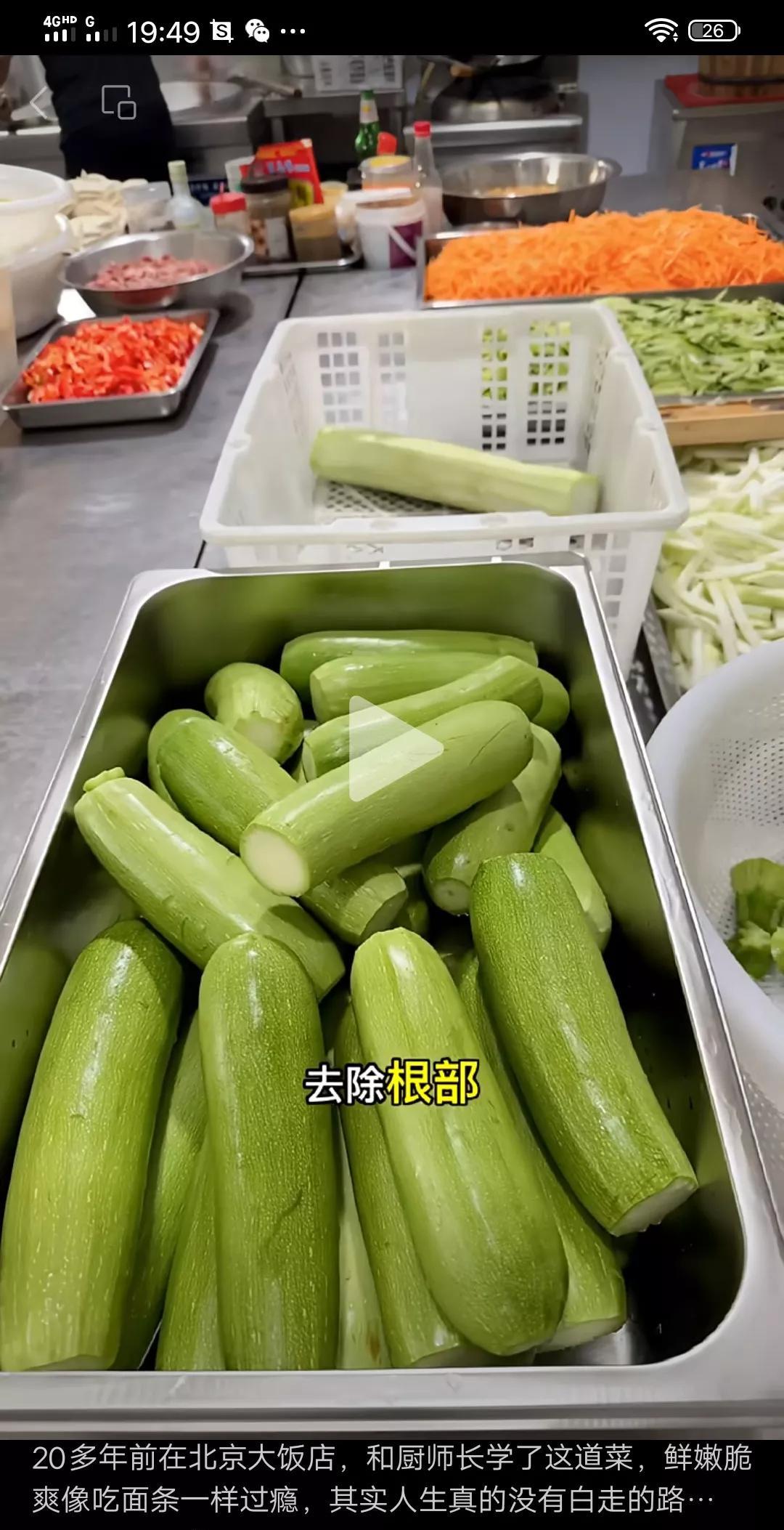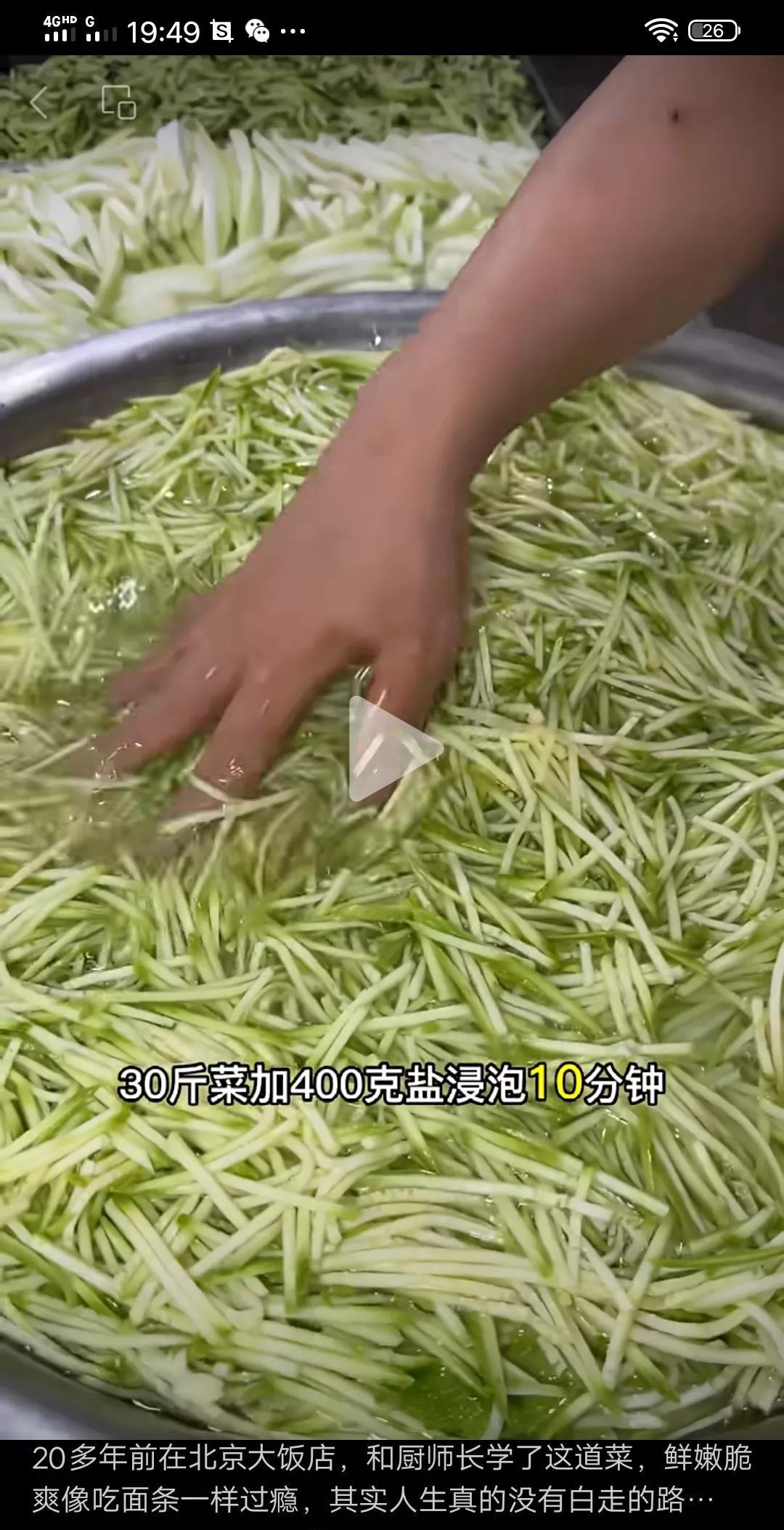 凉拌西葫芦 地里刚摘的西葫芦,去除根部,擦成均匀的丝条,盆中倒入凉白开,30斤菜