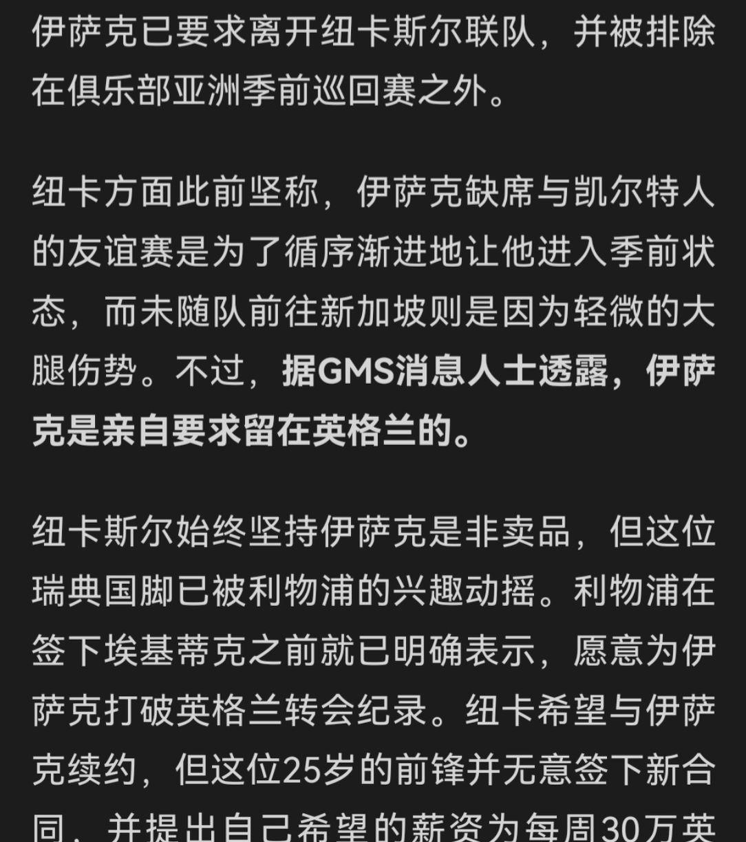 这样的话,利物浦大概率引进,这就要看纽卡答不答应放人了#利物浦#伊萨克#纽卡