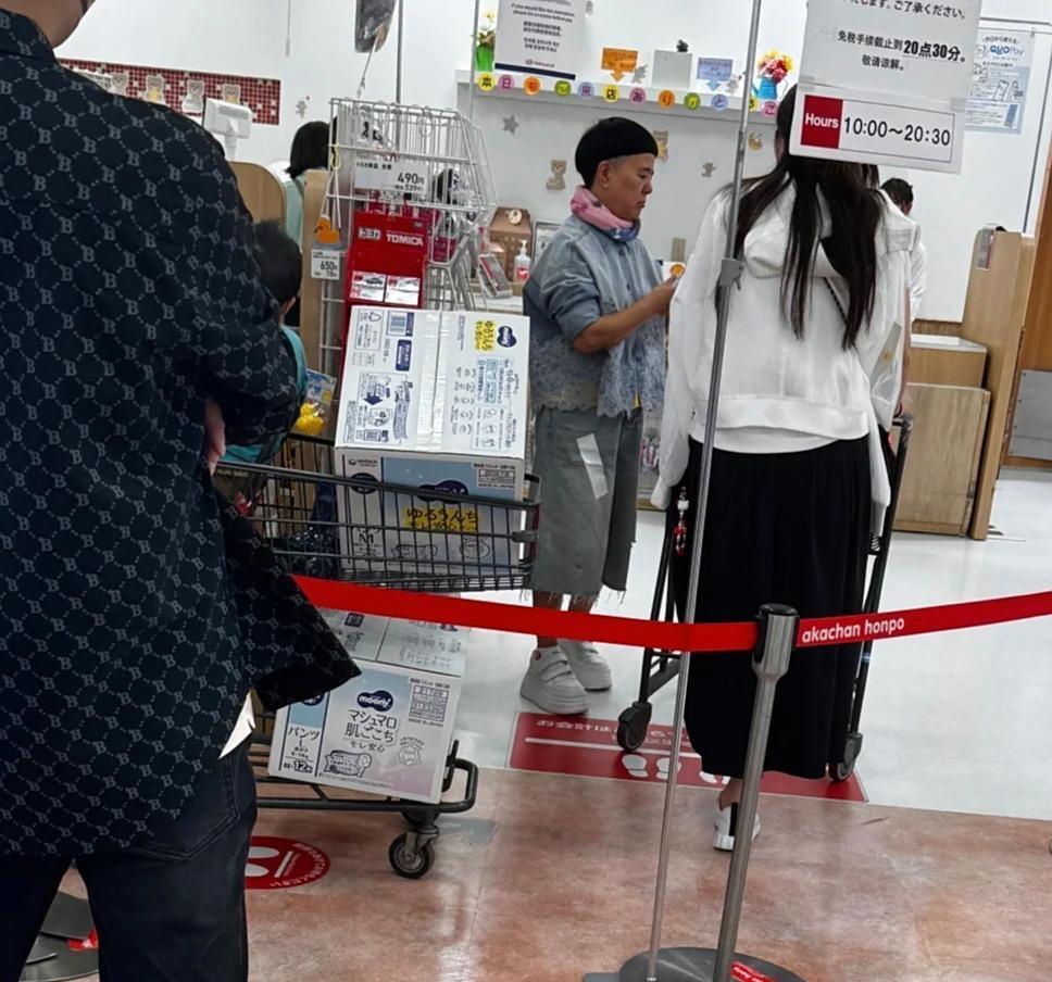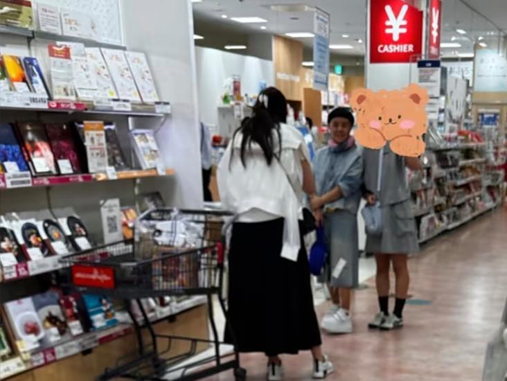 金龟子和女儿在日本大阪一家商场购物,她的个子很矮小,脸部素颜显苍老,整个人看起来