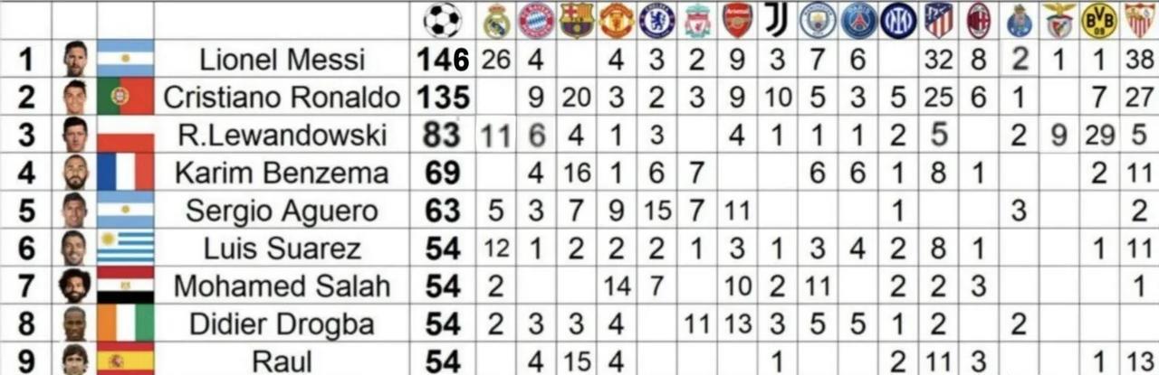 自己去看表格,里面有英超豪门。带上英超豪门感觉c罗更尴尬,和没踢过英超的进球数差不多。。。[哭笑不得]