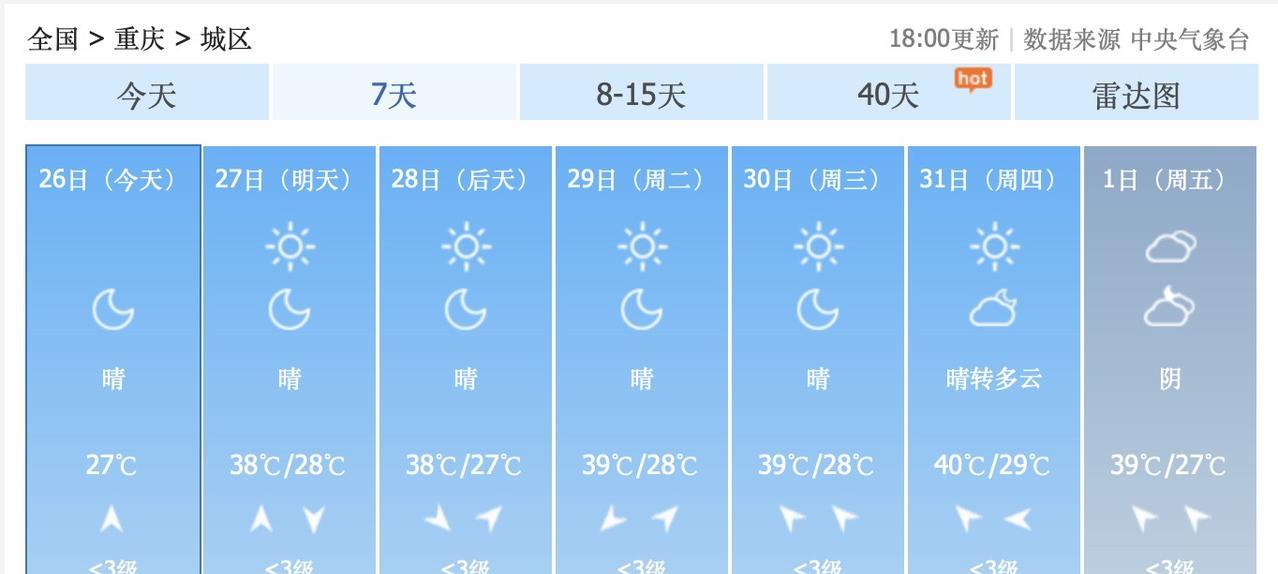 重庆主城区,一个好消息,一个坏消息!7月27日到8月6日,重庆持续高温,41度高