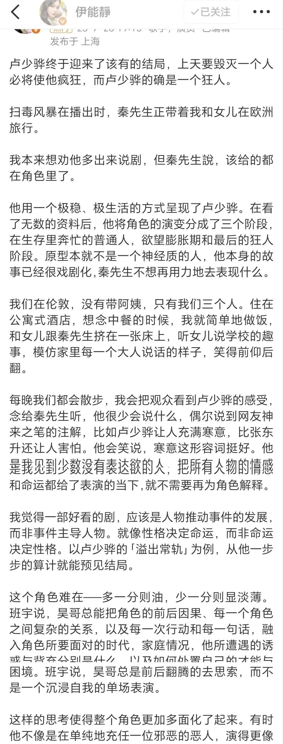 秦昊不像是演的,伊能静都怕了! 伊能静说,秦昊要给我吃啥我都不吃,他要带我去那个风景区,没山我也不去,我也不跟他睡觉。 伊能静怕秦昊在食物里下毒、怕秦昊把她推落悬崖、怕他夜里“做”了她。 伊能静的黑色幽默,就像她的小作文一样,非常有意思,意犹未尽的感觉! 伊能静曾说,秦昊将不会爱上别的女人,她只爱我。就像网友问卢少骅到底喜欢哪个女人时,伊能静回答:“不用猜,他最爱的女人是小静。” #秦昊情商# #伊能静人生感悟#