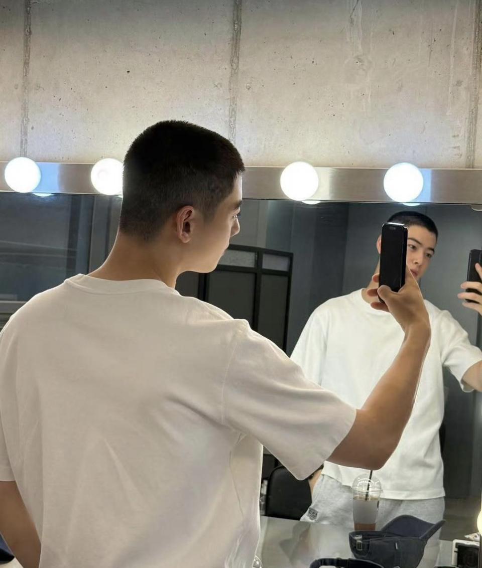 7月19日他在Ins发剃发vlog,从顺毛帅哥秒变寸头硬汉,配文“短发第一天,清
