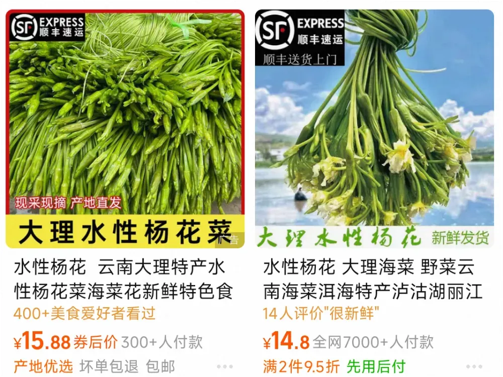 在某宝上,你一搜,也能找到卖这种菜的商家。人写的就是“水性杨花”。