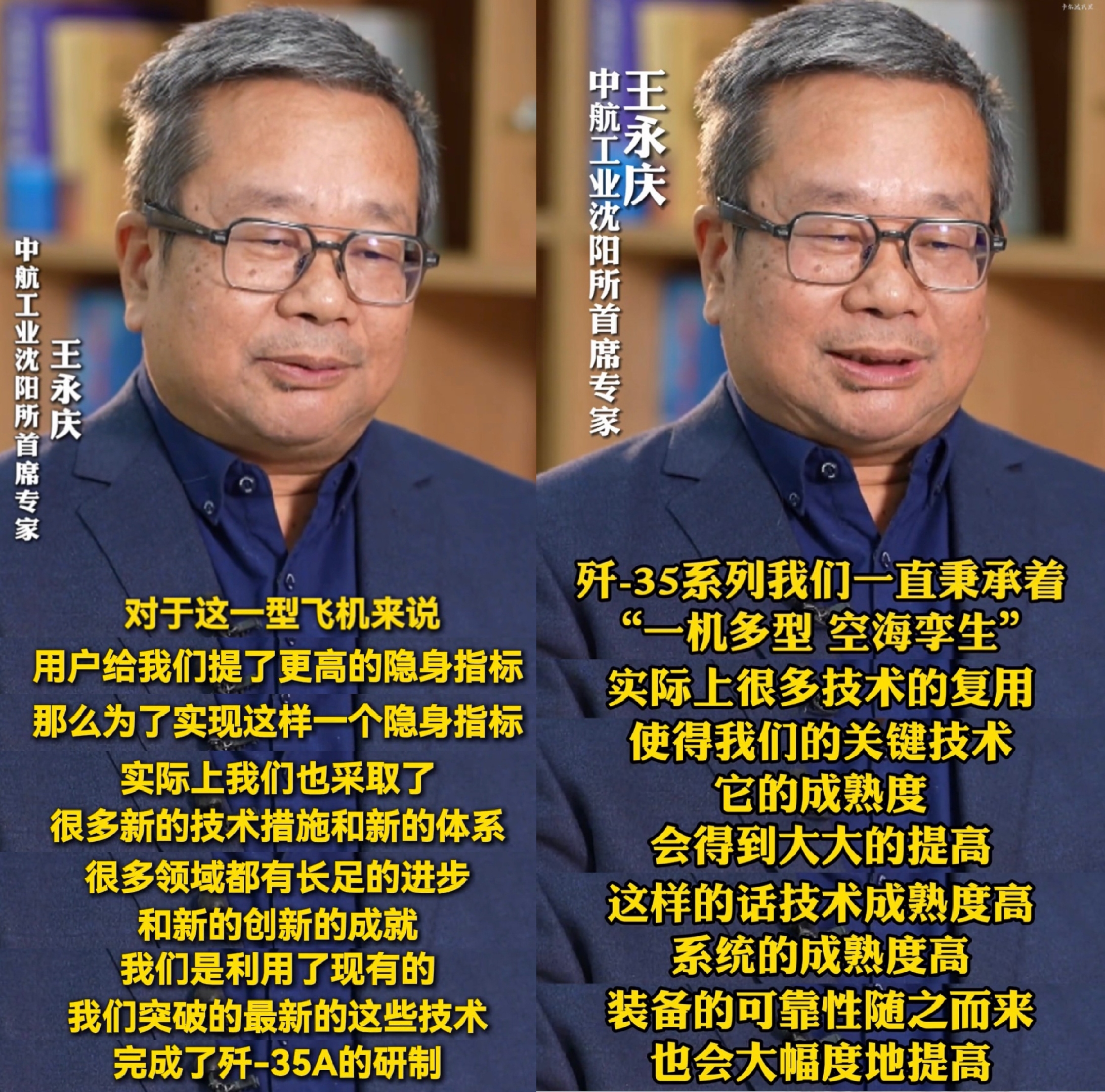 11月5日,央视采访王永庆总师,总师亲口实锤,用户提出了更高的隐身能力指标,并且歼-35实现了这个“更高的指标”。