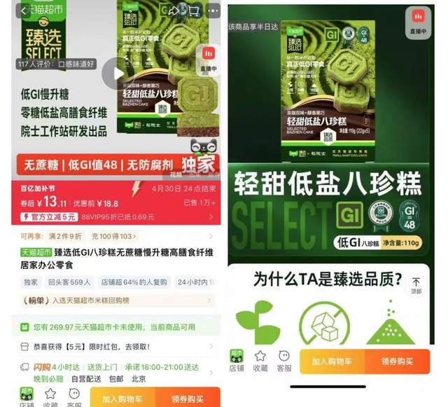 2026年春节上市的天猫超市臻选低GI八珍糕,就是从宫格里长出来的新品。