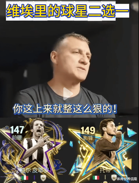 一次极限二选一采访中,维埃里表现得非常搞笑,第一组是皮耶罗还是托蒂,对此维埃里立刻抱怨怎么一上来就搞这么狠的,都是意大利国家队的队友,让他很难抉择。