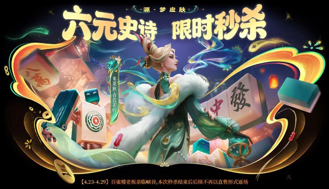 米莱狄的新皮肤,就是已经提到过的源梦皮肤【青瓷雀吟】,4月23日,秒杀史诗品质。这款皮肤不论是品质还是创意,都是非常不错的,值得入手。