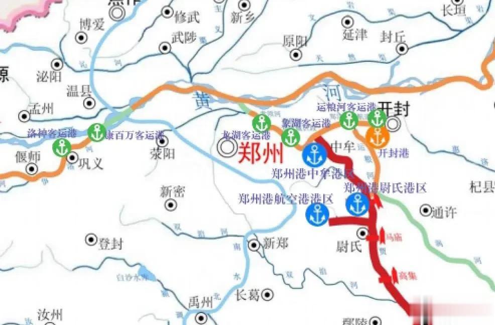 在水运系统规划方面,将依托郑州港建设,打造郑州港“通江达海”的国际水运航线,构建贾鲁河、沙颍河入海口的通航体系,形成郑州海上丝绸之路新通道。规划布局郑州港中心港区、中牟港区等。新增港南站至郑州港的铁路专用线,强化郑州港与铁路、公路等交通方式的无缝衔接,带动临港产业聚集。