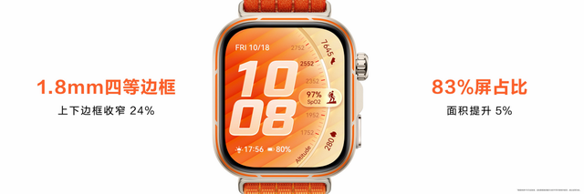 屏幕体验方面,华为WATCH FIT 5 Pro屏幕尺寸升级至1.92英寸,屏占比高达83%,采用极窄四边等宽设计,带来更开阔、更沉浸的视觉体验。亮度方面,华为WATCH FIT 5峰值亮度提升至2500nits,华为WATCH FIT 5 Pro全局激发最高亮度可达3000nits,即使在耀眼的正午阳光下,屏幕内容依然清晰可见。