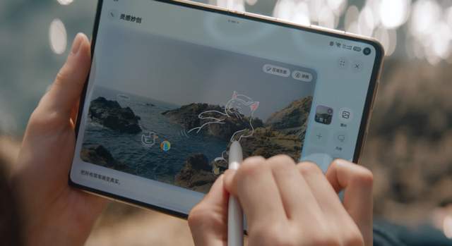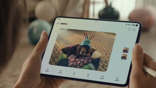 编创视频展示了多种趣味场景。社交互动里,随手涂鸦,为同事制作爆炸头恶搞表情包。娱乐创作时,用手写笔在照片上给宠物加上帽子、衣服,几秒钟就搞定。这些场景都指向阔屏搭配手写笔与AI灵感妙创功能,将在更多生活与工作场景中,带来前所未有的高效与乐趣。