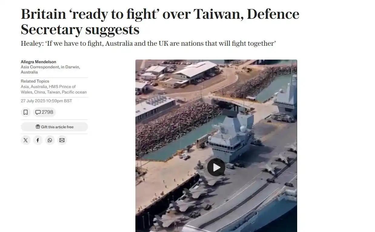 中国这回对英国防长约翰·希利的制裁,那真是大快人心! 本月29日,英国国防大臣约翰·希利表示:英国准备好为台湾战斗。鉴于公然干涉中国内政,有必要采取断然措施,中国外交部宣布对希利实施制裁,禁止他入境中国并冻结其在华资产,这可不是闹着玩的。 这事得从7月27日说起,希利在伦敦一个国际安全论坛上放出狠话,表示英国准备好为台湾战斗,台湾的自由和民主对英国至关重要,我们绝不会坐视不管。 公然宣称“英国准备好为台湾战斗”,还说什么“台湾是英国在印太地区的重要伙伴,英国将坚定支持台湾的自由和民主”。 这话一出口,简直是捅了马蜂窝,直接就踩在了中国核心利益的红线上。 台湾问题是中国内政,涉及到国家主权和领土完整,一个中国原则早就是国际共识,希利这话等于公然挑衅,不仅无视历史事实,还违背了国际法和国际关系基本准则。 中国驻英国使馆当天就火速回应,发言人说得掷地有声:“我们坚决反对英方散布‘中国威胁论’,恶意抹黑中国,企图为其扩张军力找借口,台湾问题是中国内政,任何外部势力无权干涉。” 这态度硬得跟铁板似的,明白告诉英国:想着别蹬鼻子上脸。 希利的言论一出,在国际上也很快炸开了锅。 台湾问题敏感得很,英国这么一搅和,立马让台海局势紧张了不少,一些西方媒体趁机炒作,再度老调重弹,渲染“中国威胁”,试图给中国施压。 但这影响可不是单方面的,英国自己也讨不了好。 中国的强硬态度让国际社会看清楚,谁敢在台湾问题上挑事,谁就得付出代价。 7月29日,中国外交部正式出手,宣布对希利个人实施制裁。外交部发言人在记者会上说得明白:“英方言论严重干涉中国内政,损害中英关系,中方强烈不满并坚决反对,后果由英方自负。” 这制裁来得快准狠,希利估计都没回过神来。 眼看中国不留情面,希利终于慌了。 他在推特上发了个声明,赶紧找补:“我的言论被误解了,英国政府一贯坚持一个中国政策,不支持‘台独’。” 这话听着就苍白无力,跟前一天的嚣张劲完全两样。 可惜他没明白祸从口出的到来,中国根本不吃这套,制裁已经落锤,希利这回算是自找苦吃。 在我看来,他这番话其实暴露了英国的老毛病——“殖民思想”又犯了,这是英国历史遗留的傲慢心态。 当年“日不落帝国”靠着坚船利炮横行世界,1840年的鸦片战争就是典型例子。 英国用武力逼清政府签下《南京条约》,割让香港,强开通商口岸,后来还伙同八国联军烧了圆明园,掠走无数文物。 那时候的中国积贫积弱,只能任人宰割。 可如今的中国早就不是当年的中国了,英国还抱着老殖民思维,以为自己能指手画脚,真是可笑。 再看看现在的军事对比,中国的发展更是让英国望尘莫及,改革开放以来,中国经济腾飞,军事实力更是突飞猛进。 海军方面,中国已有“山东舰”“福建舰”等多艘航母,核潜艇技术也领先全球,能执行远洋作战任务。 反观英国,海军实力早就今不如昔,目前就一艘“伊丽莎白女王”号航母,还老出故障;核潜艇只有几艘“前卫”级,性能老旧,跟中国的新型核潜艇根本没法比。 如果台海真打起来,英国那点军力过来就是送菜,连中国近海都进不了,还谈什么“为台湾战斗”? 希利这不是自不量力是什么,到时候损失的可不只是面子,英国的国际信誉和经济利益都得跟着遭殃。 更讽刺的是,希利的狂言连盟友都不买账。 澳大利亚总理理查德·马尔斯7月28日公开表态:“澳大利亚坚定支持一个中国政策,反对任何形式的‘台独’和外部干涉,我们致力于跟中国保持建设性关系。” 这等于当众打脸希利,连AUKUS的盟友都不跟他一条心,日本那边也小心得很,日本外务大臣7月29日说:“台海和平稳定对地区安全至关重要,各方应通过对话解决问题,避免局势升级。” 日本这态度谨慎得不得了,生怕被英国拖下水,盟友都这么冷静,希利还跳得欢,只能说是自讨没趣。 希利明知不敌还要叫嚣,说白了就是想刷存在感,顺便抱美国大腿。 英国脱欧后,经济不景气,国内矛盾一大堆,希利拿中国说事,无非是转移视线,给民众打鸡血。 同时美国一直想拉拢盟友在印太地区围堵中国,希利这是在表忠心,显示英国还有点“影响力”,可这招太蠢了,不仅惹怒中国,还让英国在国际上更孤立。 AUKUS框架下,澳大利亚都跟中国保持合作,美国自己也在重新评估这协议,希利这时候跳出来,简直是给自己找不痛快。 如此看来,希利的挑衅就是无知加傲慢,既无视中国底线,也暴露了英国处理对华关系时的历史包袱。 中国这次制裁,摆明了态度:谁敢在台湾问题上搞乱,谁就得付出代价。 国际社会大多支持一个中国原则,反对外部干涉,英国再不认清形势,继续冷战思维,只会把自己套进去,中国维护主权和领土完整的决心,谁也别想动摇。 参考信源: 中国驻英国使馆发言人回应希利言论 外交部记者会实录