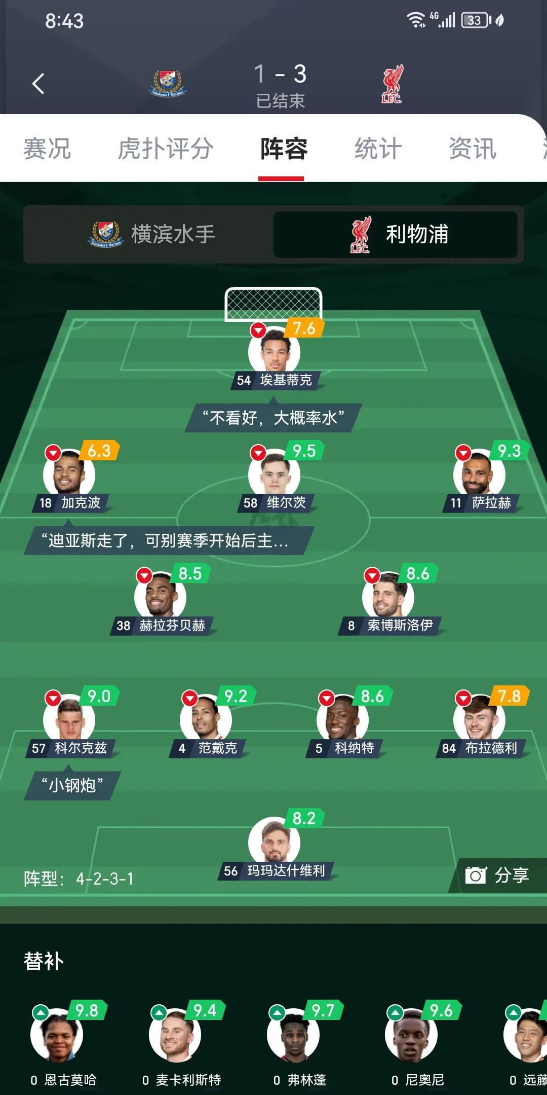 虽说友谊赛,我咋利物浦整体实力变弱了呢?左边路爆点没有了,右边路的长传也没有了。