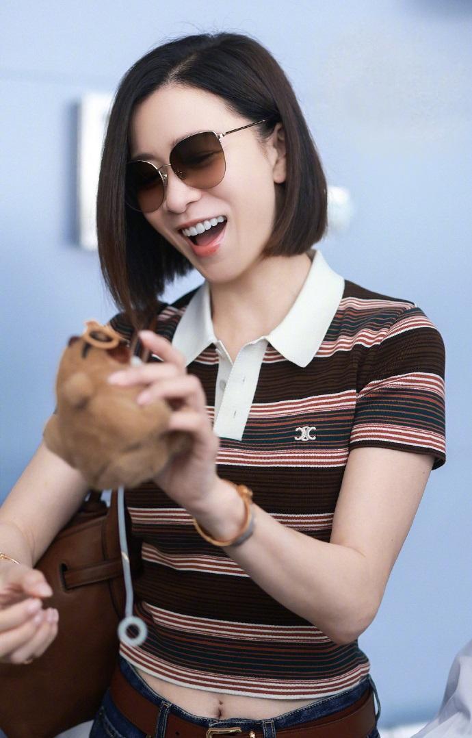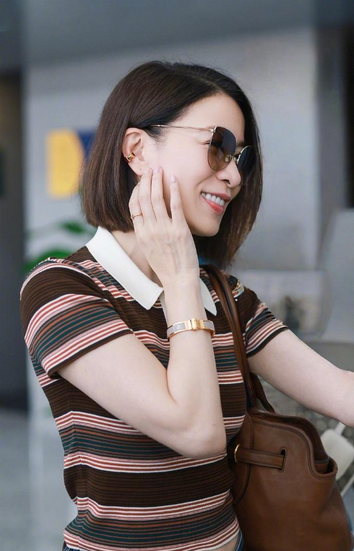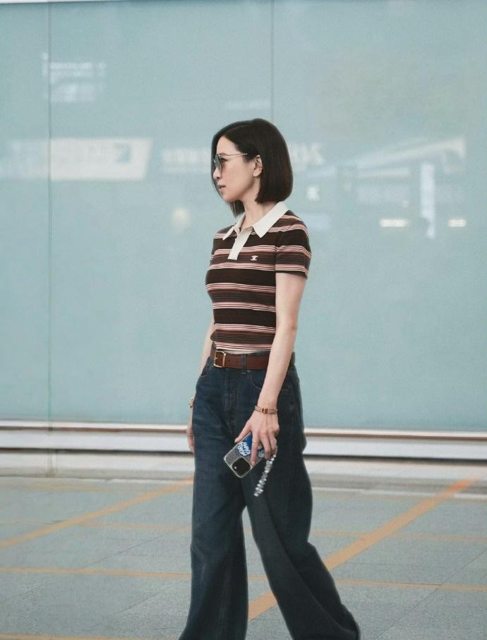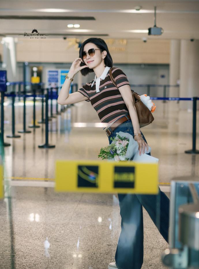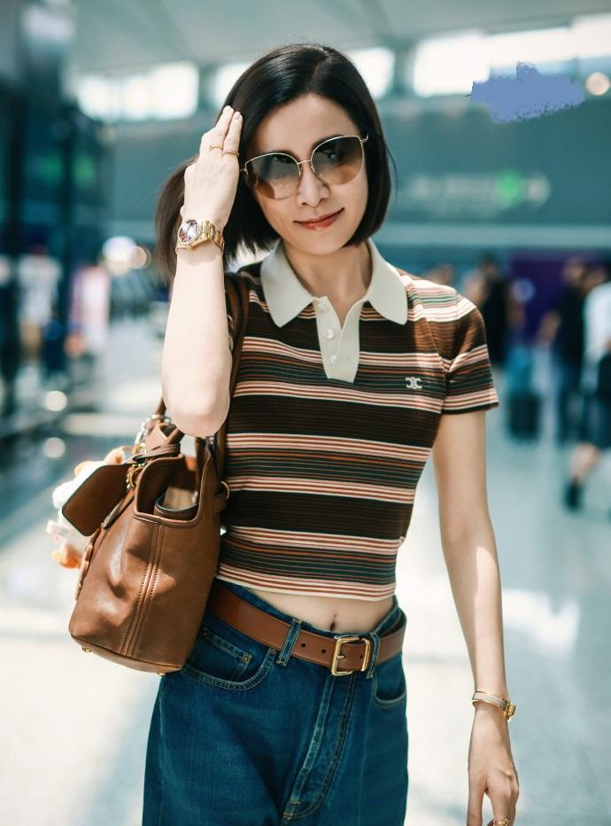 今天佘诗曼现身机场,她这回搭配的很有潮流之美,整个人也显得好年轻。 佘诗曼上身穿漂亮的条纹T恤,下身搭配蓝色牛仔裤,真的是太俏了。 她这次大秀细腰,还凸显出了完美的身材比例,气质格外的出众。 佘诗曼脚踩厚底运动鞋,还留着清新的短发,增添了干练之美。 她戴着黑色的墨镜,有种酷酷的感觉,也很有国际大牌明星范儿。 佘诗曼背着驼色包包,走路带风,看上去格外的潇洒。