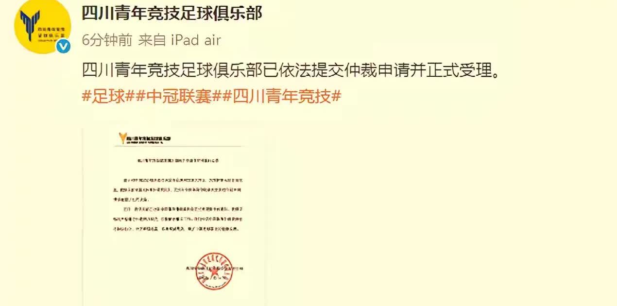 四川可能是中国足球由弱变强走向世界的起点!四川青年竞技俱乐部这个申诉也许不能够改