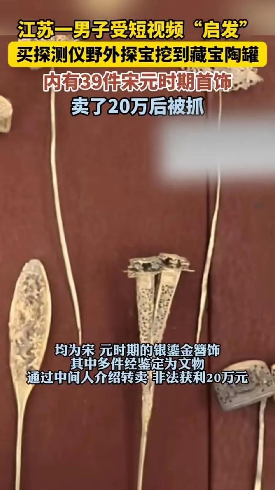 野外探宝后没有主动上交,江苏一男子因倒卖价值20万的宋元首饰,被判三年缓刑四年,