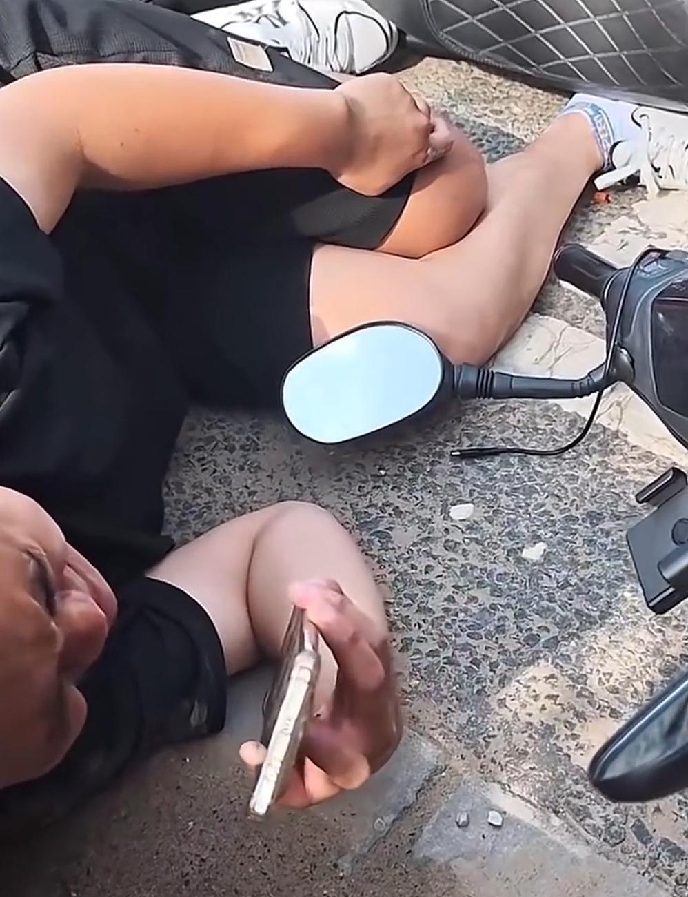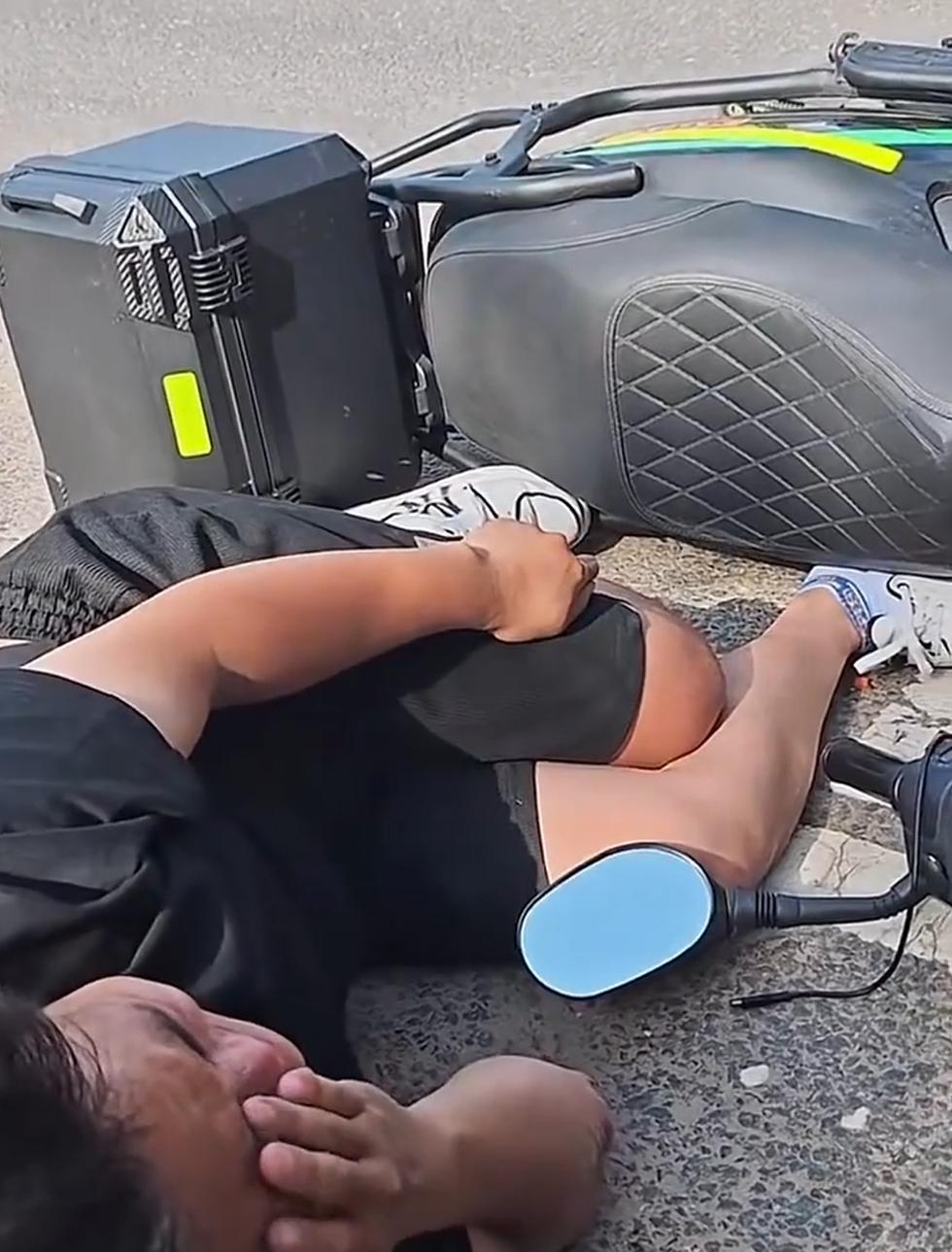 近日,北京一网友开车行驶在路上,突然发现路边一辆电动车倒地,外卖员躺在路边无法动