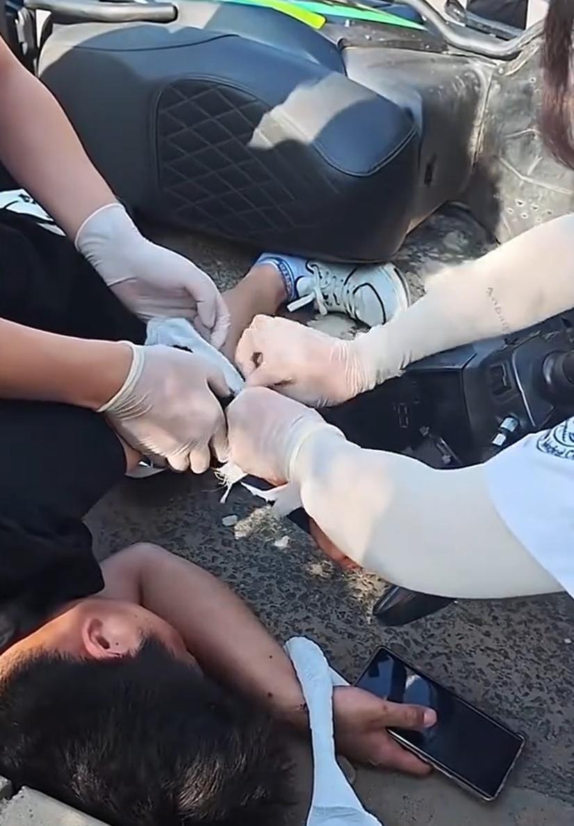 近日,北京一网友开车行驶在路上,突然发现路边一辆电动车倒地,外卖员躺在路边无法动弹。下车一问才知道,小伙子20岁出头,是第一天跑外卖,因怕订单超时骑车时不小心摔了。 网友一看小伙子的左胳膊骨头都支出来了,骨折了,就问他需不需要叫120。 小伙子说不用,然后赶紧给顾客打电话,解释自己摔了,订单要超时了。又给商家打电话,来回解释。 网友跟小伙子说摔得有点严重,还是叫120来看一下。一听这,小伙子难过的大哭起来。 他说家里人还在住院,叫120又要花钱。 网友劝小伙子这必须得去医院,小伙子不敢告诉家人,给朋友打了个电话来帮忙。最后,120把小伙子拉走了,网友帮忙把电动车推到了路边。 是年轻人不努力吗?生活就是这么苦,不敢停下来,不敢生病,不敢超时,这就是大多数普通人一生的写照吧!
