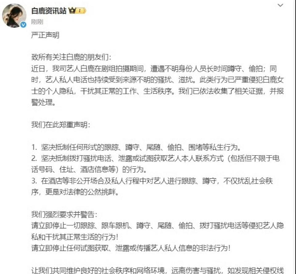 白鹿在《莫离》剧组遭遇的事儿,说出来都离谱——有人天天蹲点跟拍,还摸到酒店同楼层