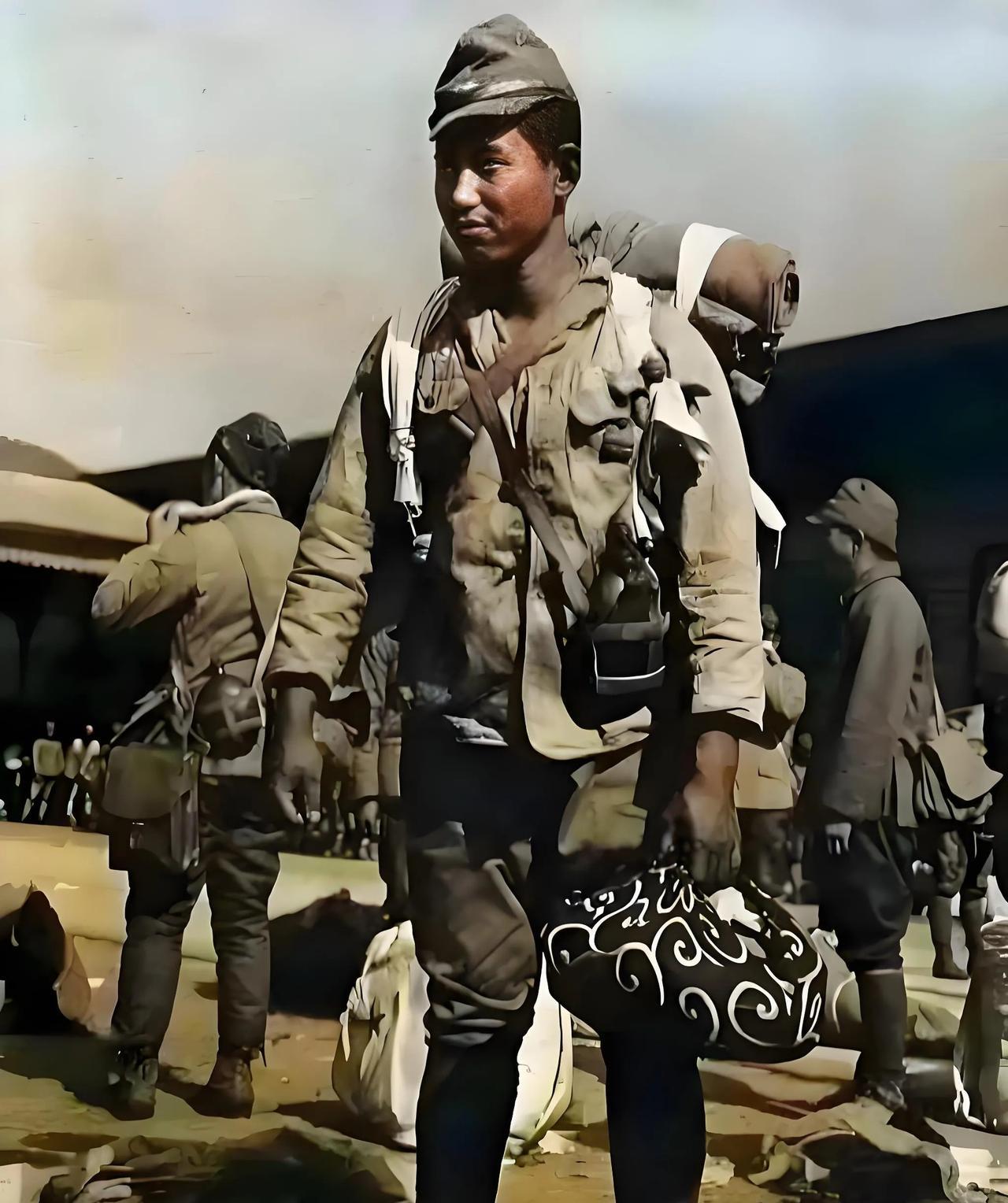 1945年12月,照片上这个日本鬼子命是花了5.5亿美元买来的。此时他在日本东京火车站下车后,深深的吐了一口气,微笑着庆幸自己没有战死回到了岛国。他仍然穿着一身军服,背着简单的行李,左手拎着的花布包是他死亡战友的骨灰盒,后面的日军也是同他一块从菲律宾坐火车到东京下车的战俘。 1945年8月15日,日本战败宣布无条件投降后,在菲律宾的日军不相信日本会投降,在这些侵略者的心中认为日本军队是战无不胜的,大批的日军不甘心失败像疯狗一样上蹿下跳,有剖腹自杀的,有相互对射而死的。最后,剩下的8万多日军官兵向菲律宾缴械投降了。当时菲律宾政府提出,要求日本必须向菲律宾支付80亿美元的战争赔款才肯释放日本战俘,否则将他们全部枪杀。或是在规定的时间内,赔偿款晚到一天,枪杀100俘虏,晚到二天枪杀200俘虏,以此类推。而日本政府耍无赖拒绝赔偿,菲律宾说到做到实施对日本战俘的枪杀,天皇裕仁吓破了胆,怂了。赶紧请美国人出面调解,在美国人的作用下,日本同意支付菲律宾5.5亿美元的分期赔款,分十年付清,从1956年协议签订开始计算到1966年完成。菲律宾这才释放了剩下的日本战俘。