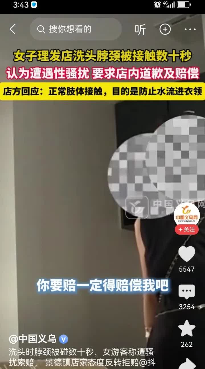 女子去剪头发,男理发师在她脖子里面垫了一块毛巾,(我相信剪过头发的都知道怎么回事)然后触碰到了她的皮肤,她说这是性骚扰,还说一定要赔偿,不然被白摸了。 若是男人碰到女人的皮肤就叫性骚扰,那么以后男人就不要碰女人了。若是你对男人的触碰感到不舒服,就去女理发师的店子。这又是一起拉着警察当坏人的案子,还好警察没有上当。法律都没有说过性骚扰就一定要赔钱,赔钱了实际上是对女性的一种侮辱。你又不是卖的?很明显女人希望自己的每一寸肌肤都值钱,都是可以用来卖的,可以用来讹的。 若是性骚扰的案子要赔钱?那么我肯定:这会让很多女人学坏,会成为一个讹人的产业链。性骚扰成立就判刑,就坐牢,一分钱都不能赔。