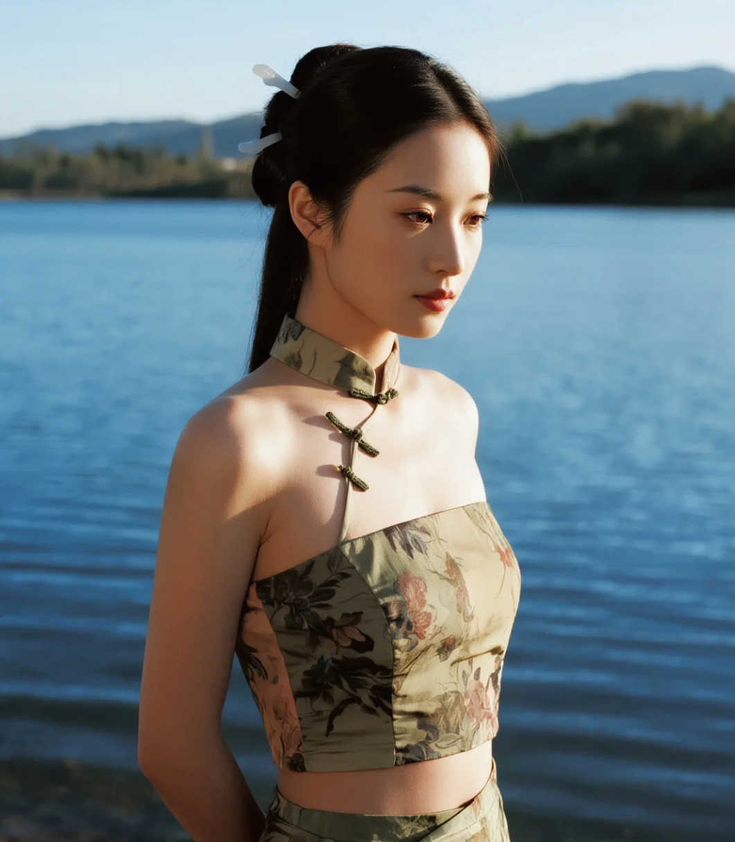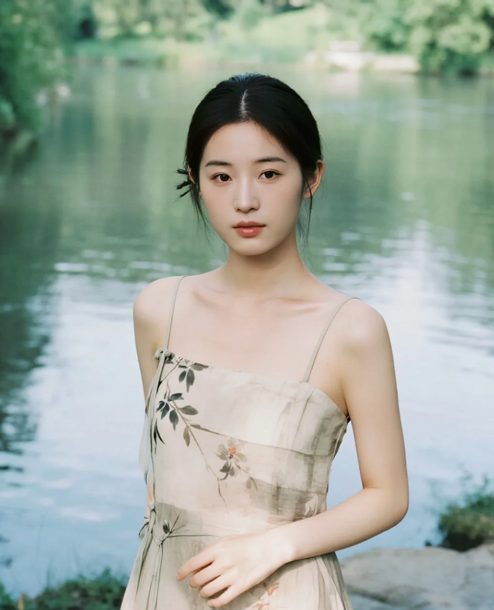 波光粼粼闪烁,映照她内心澄澈的喜悦