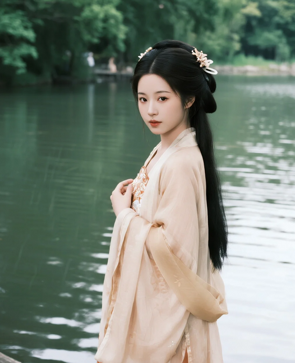 波光粼粼闪烁,映照她内心澄澈的喜悦
