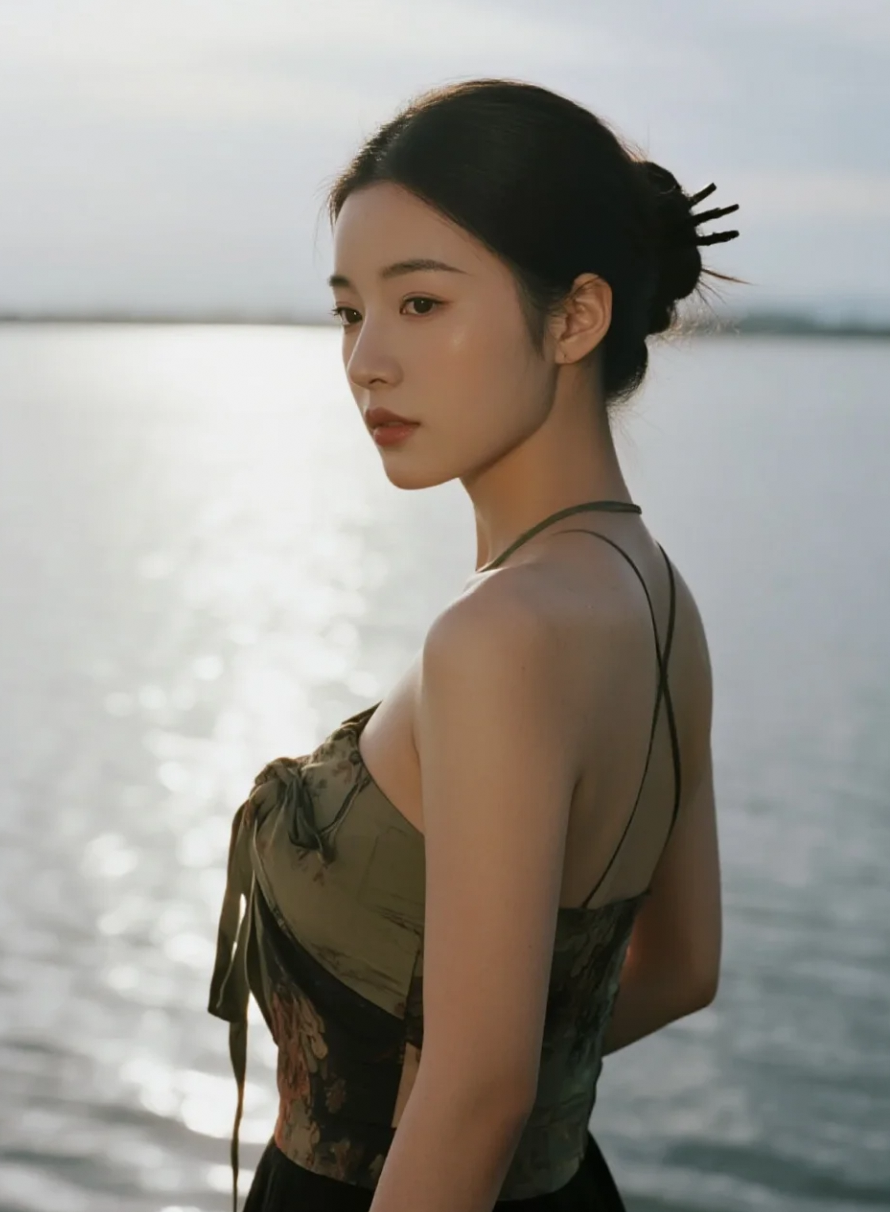 波光粼粼闪烁,映照她内心澄澈的喜悦