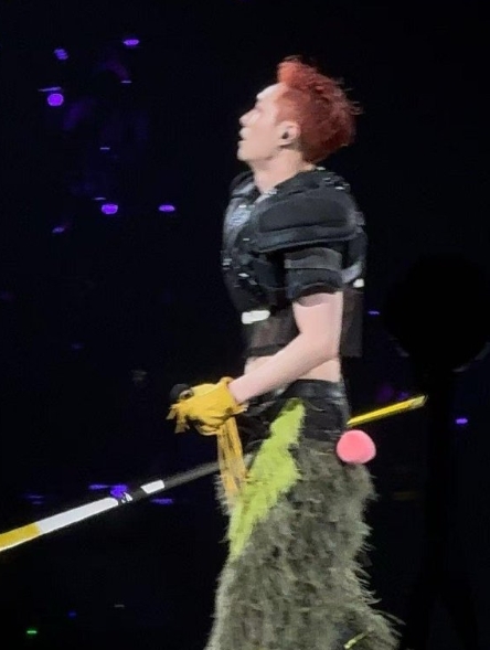 张艺兴真是把贝壳宠的没边了,把粉丝送的小桃子别在裤腰上满场跑!红发+未来感盔甲,