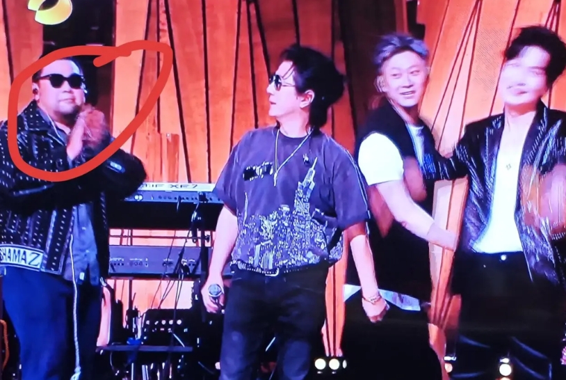 发现没?墨镜很重要,但也不是万能。 昨晚郑钧帮陈楚生合唱,舞台上墨镜绝不摘下,休息室墨镜绝不摘下,后来发现连庆功宴墨镜还是绝不摘下,墨镜帮他挡住了岁数。 歌手里的gai也喜欢戴墨镜,他长得实在比较一言难尽,墨镜有助于遮挡他的容貌。 不可否认,墨镜能帮大多数老人或丑人变漂亮,所以我们看到老阿姨的披肩秀里也很多戴着墨镜。 不过墨镜也不是能帮助每个人,比如图片红圈里的这位墨镜大哥,是昨晚郑钧舞台乐队手里一员,但又似乎没啥乐器归他演奏只负责拍手,这位仁兄虽然也学别人戴了墨镜,但墨镜没有助他丝毫,怎么看怎么像个盗窃团伙派出来的踩点小卒。