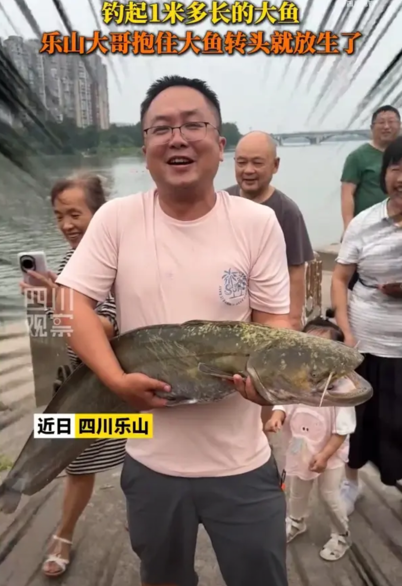 男子钓1米长大鱼 炫耀一圈后放生 近日,四川乐山。钓友闵先生钓到了1米多长的大鱼,大约有20斤。闵先生“炫耀”了一圈后就将大鱼放生了。闵先生表示:这种鱼叫大口鲶,自己钓鱼只为娱乐,所以经常将鱼放生。