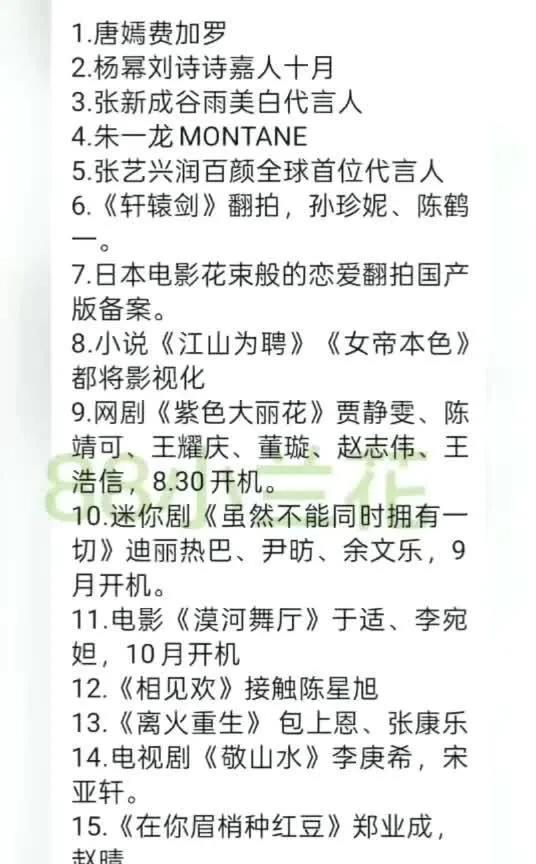 【顶流新动向!多部大剧开机+明星新代言汇总】 唐嫣登费加罗,杨幂刘诗诗嘉人十月刊