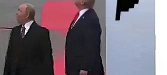 普京单刀赴会特朗普,普京刚下飞机走过红地毯非常谨慎抬头观看头顶飞过的美国轰炸机,