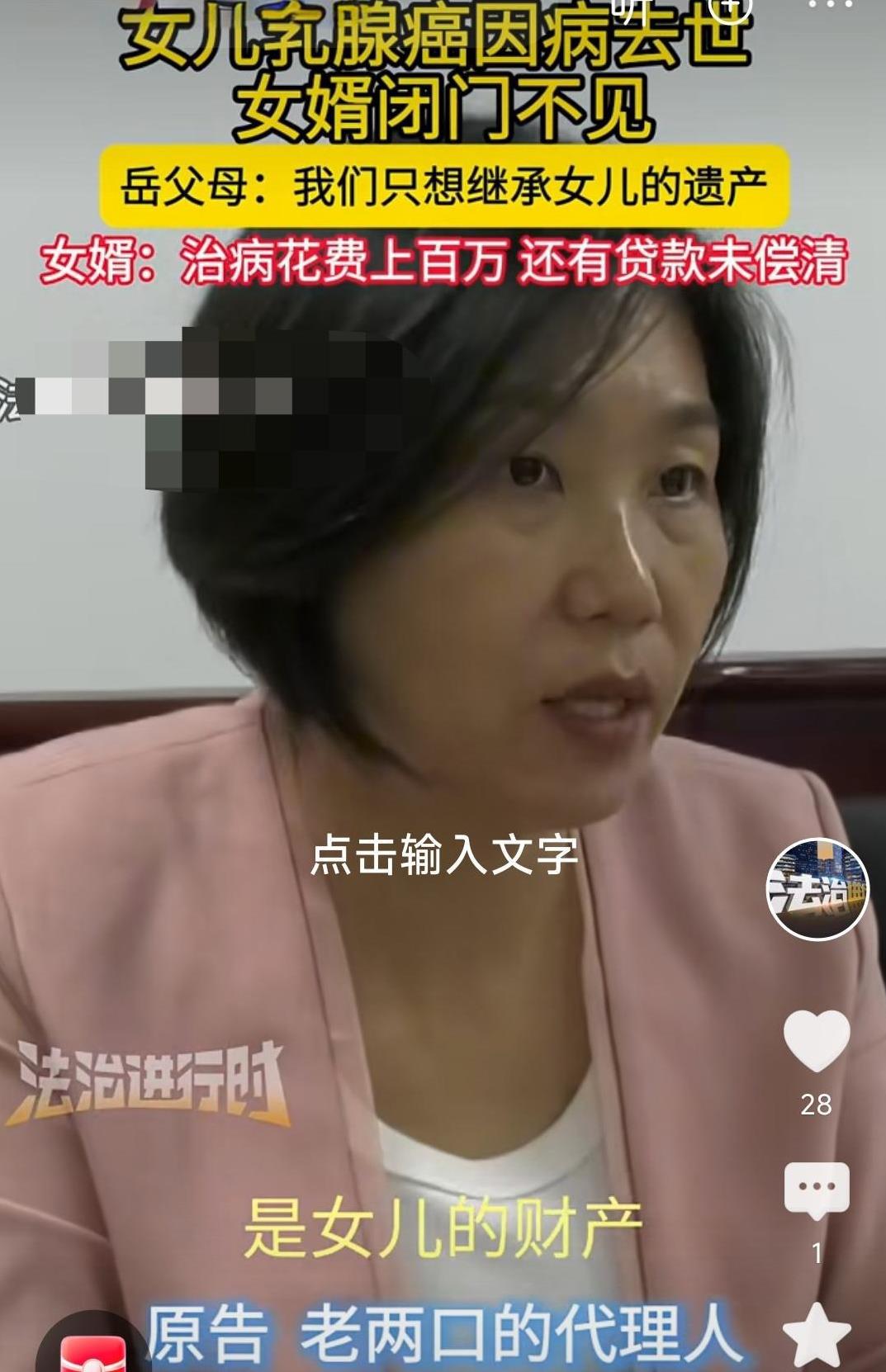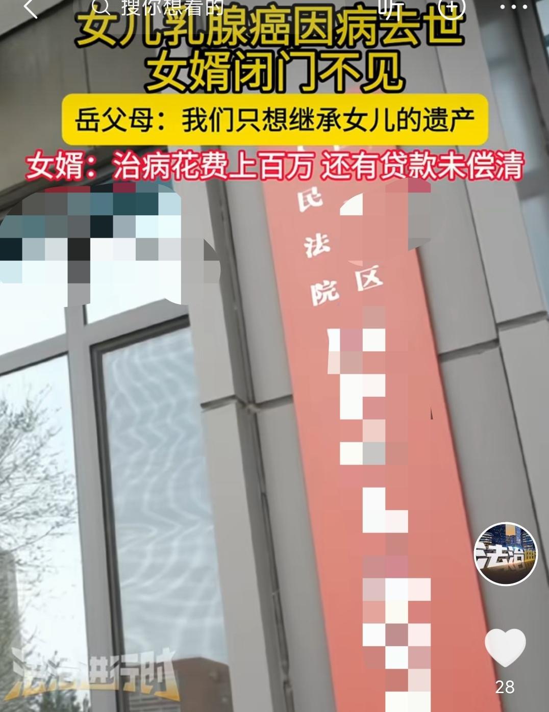 北京,女子婚后体检查出乳腺癌,尽管丈夫和父母全力救治,可最后仍撒手人寰。女儿走后,父母多次联系女婿都被拒之门外,老两口寒心不已,于是起诉女婿,要求继承女儿的遗产,而女儿名下的房产成为此次争论的焦点。 据法治进行时报道,张女士与李先生是高中同学,高二那年的夏天他们恋爱了,二人都是彼此的初恋。虽然学校管制很严,但二人悄悄有了自己的小秘密。 爱情在学生年代总是充满浪漫色彩,他们在学习中互相鼓励打气,高考那一年,他们为了守护这份感情,努力考到了同一所大学。 大学四年,他们的爱情经受住了时间的考验,毕业之后,他们先后找到了合适的工作,并顺理成章步入了婚姻的殿堂。 因为张女士是独生女,家境不错,结婚时张氏夫妇给女儿出资100万元买了一套200万元的房子作为婚房,剩下的100万元是小两口贷款的,房产证写了张女士的名字。 本来是非常幸福美满的一家,然而天有不测风云。婚后两年,他们一直想要个孩子,不料在准备要孩子做体检时,发现张女士身患乳腺癌,且是晚期。 这一消息犹如晴天霹雳,打破了小两口幸福美满的生活。 在此过程中,他们花了近120万元,积蓄花光了,李先生还卖了结婚时的车,也借了一些钱。 最后,退休后的张氏夫妇还是经历了白发人送黑发人,十个月后,张女士离世,两位老人痛不欲生。 退休后的张氏夫妇感觉很孤单,想去女儿的房子里再看一看,结果连续去了三次都没找到人,给女婿打电话,发现已是空号,女婿已经改了电话。夫妇两人又去女婿的工作单位找人,女婿却只是匆匆忙忙打个招呼就躲开了。 老两口感受到了女婿的冷漠,觉得女婿已经翻脸不认人。在丧失独女的悲痛还未平复之时,二人觉得女婿似乎早就开始了新的生活,已经断绝了与女儿相关的一切联系。 张氏夫妇无法接受女婿的这种做法,觉得李先生对不起和女儿的婚姻,也对不起女儿的付出,于是一纸诉状将女婿起诉了,要求继承女儿的遗产,也就是他们当时出资一百万买的那套房子。 庭审时,女婿拿出了多份贷款合同和借款收据,明确表示在给妻子治疗中花费了上百万元,而且现在房贷估算还有60多万未结清,压力很大。 李先生也做出让步,表示之后可以赡养和扶助两位老人,但希望在房产上不要进行分割,因为目前压力实在太大。 站在张氏夫妇的角度,女儿刚走女婿就对自己态度大变,心理上确实有些难以接受。 那么,从法律角度来分析,张氏夫妇有权继承女儿遗产吗? 《民法典》第一千一百二十三条规定,继承开始后,按照法定继承办理;有遗嘱的,按照遗嘱继承或者遗赠办理;有遗赠扶养协议的,按照协议办理。 如果张氏夫妇的女儿生前留有遗嘱,明确指定房产由父母继承,那么父母可按遗嘱继承房产。在没有遗嘱的情况下,适用法定继承。 《民法典》第一千一百二十七条规定,遗产按照下列顺序继承: (一)第一顺序:配偶、子女、父母; (二)第二顺序:兄弟姐妹、祖父母、外祖父母。 继承开始后,由第一顺序继承人继承,第二顺序继承人不继承;没有第一顺序继承人继承的,由第二顺序继承人继承。 张氏夫妇的女儿没有子女,丈夫李先生、张氏夫妇作为父母,都属于第一顺位继承人,拥有继承权。 同时,《民法典》第一千一百五十三条规定,夫妻共同所有的财产,除有约定的外,遗产分割时,应当先将共同所有的财产的一半分出为配偶所有,其余的为被继承人的遗产。 本案中,房子是张氏夫妇出资100万,剩余由女儿女婿分期还款购买,如果二人出资的100万被认定为赠予,那么房子归女儿一人所有。 因为女儿没有子女,且父母和女婿均为第一顺序继承人,一般情况下,三人继承的份额应当均等。所以本案件中,张氏夫妇和女婿都可以继承女儿的房产。 女婿对岳父母有赡养、扶助义务吗? 《民法典》第二十六条规定,成年子女对父母负有赡养、扶助和保护的义务,这里的子女通常指亲生子女、养子女和有扶养关系的继子女,不包括女婿。 所以女婿一般没有照顾抚养岳父母的法定义务。 但《民法典》第一千一百二十九条规定,丧偶女婿对岳父母尽了主要赡养义务的,作为第一顺序继承人。 这意味着,在丧偶情况下,若张先生对岳父母愿意赡养并确实尽了主要赡养义务,如长期提供经济支持、生活照料等,则在遗产继承等方面享有与子女同等的权利,从某种程度上产生了类似法定赡养义务的效果。 针对此案 ,网友有何看法,欢迎留言评论。