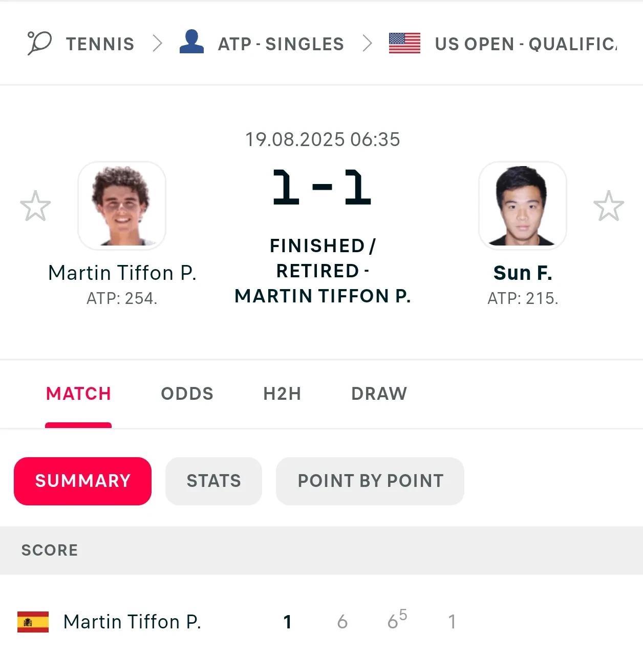 美网资格赛首轮 对方退赛。 发哥晋级资格赛次轮。 恭喜,次盘2-5落后, 从悬崖边续命。恭喜发哥。 #网坛风云#