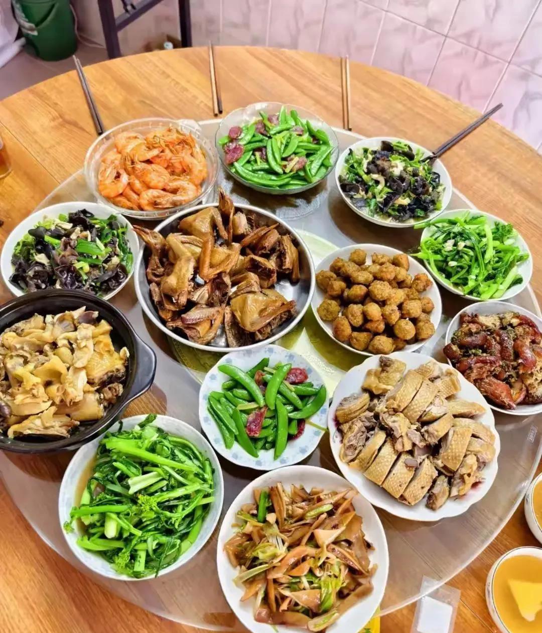 今天我和老公回去看婆婆了,走之前我们就从超市把各种食材都买好了,毕竟回了老家不是太方便,回去以后老公炒菜,我打下手,不一会儿就做了满满一桌菜,你们看我老公做的菜怎么样呢?有没有食欲呢?