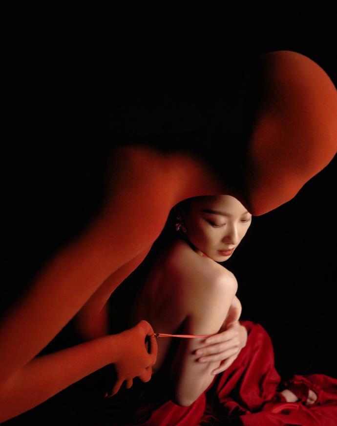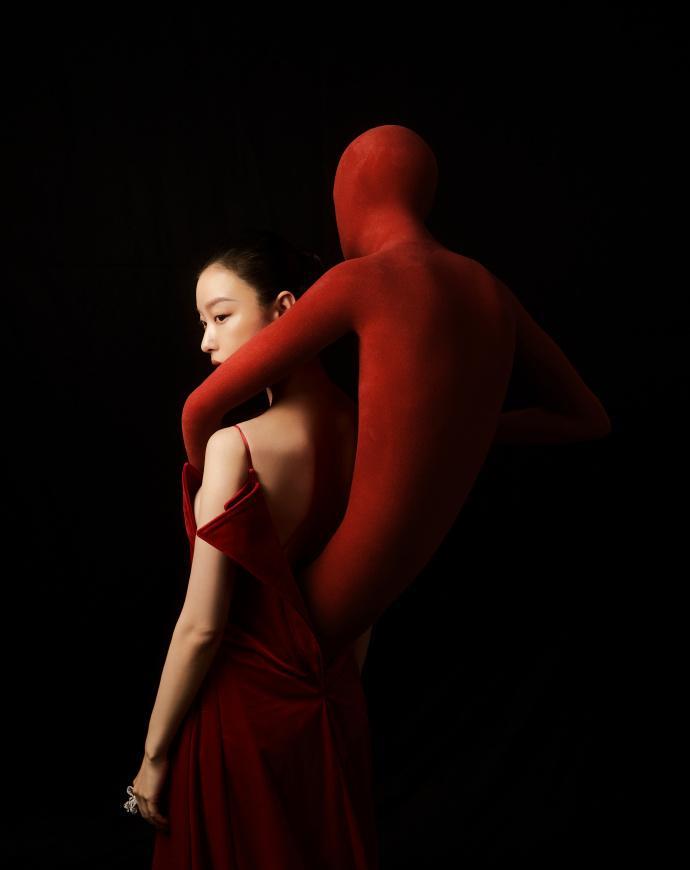 头一回见背着人走红毯的,倪妮这个造型太诡异了! W年度光影盛典,倪妮身穿红色深V
