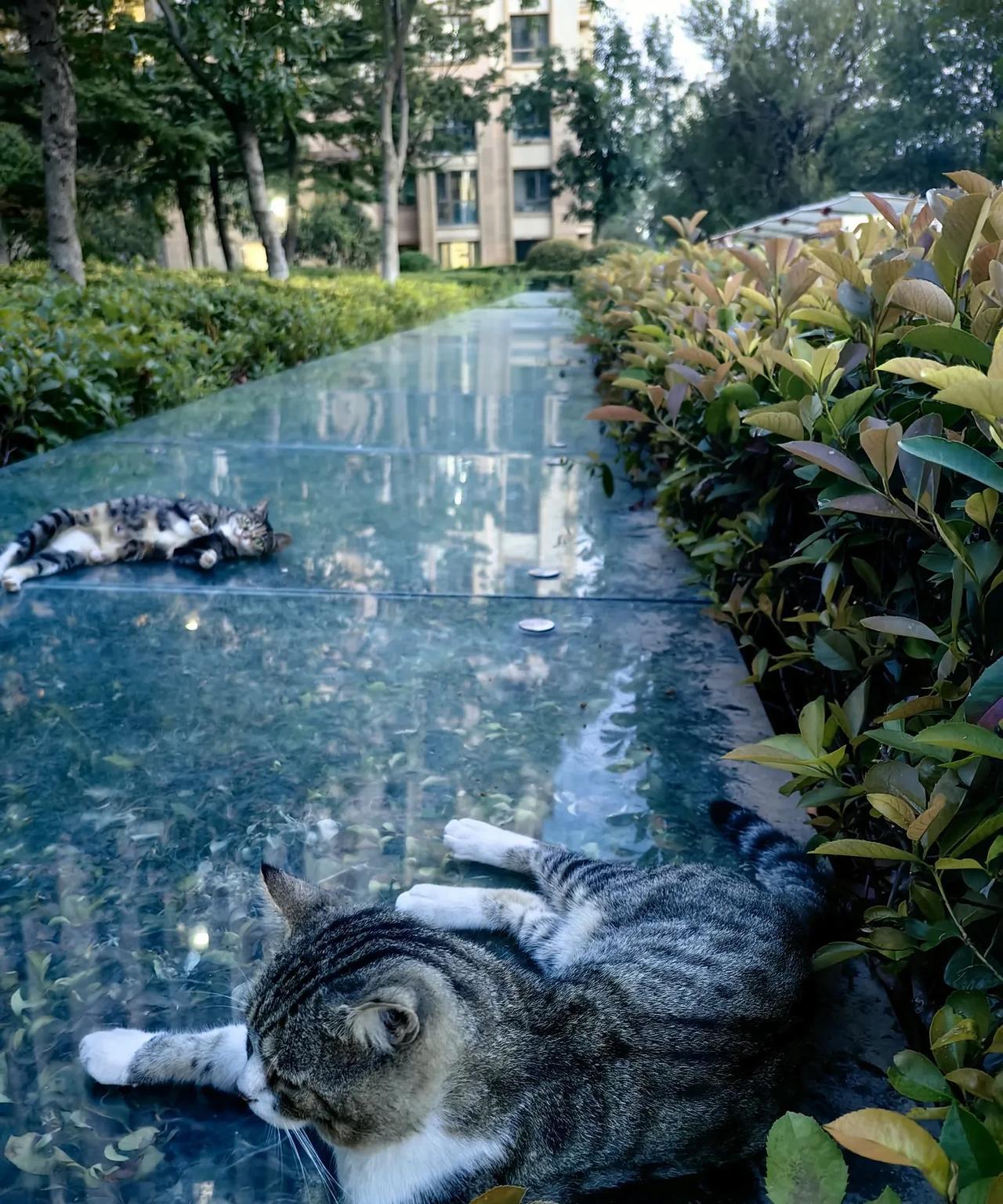 这只大胖猫叫大头,它的头确实很大。大头不是小区里的原住民,不知道从哪流浪过来的,应该是附近的幼儿园或者其他小区。前年它刚来的时候只敢躲在车棚里或者电动三轮的车厢里,胆子很小。 但是它仗着自己块头大,年轻力壮,很快就打出了自己的地盘,现在它已经成了我们这里的猫王,有了自己的孩子。虽然公猫比较潇洒,但是它偶尔还是会陪自己的孩子玩一会,享受一下天伦之乐。 大头很亲人,它之所以成为猫王,就是因为吃的多,长得快。为啥吃的多?因为它很会讨好别人。每个人见到它都会上去撸一把,有好吃的都会单独喂它,每天傍晚它都拖家带口的在我们楼下等着。 有时候会和其他的公猫争领地打架,打不过了它就装怂,自己躲在树下生闷气。你喂它,它也很知趣的朝你打滚、伸懒腰、翘起来尾巴蹭蹭你,给你提供足够的情绪价值,不会白吃你一口猫粮,是一只很明事理的猫王。