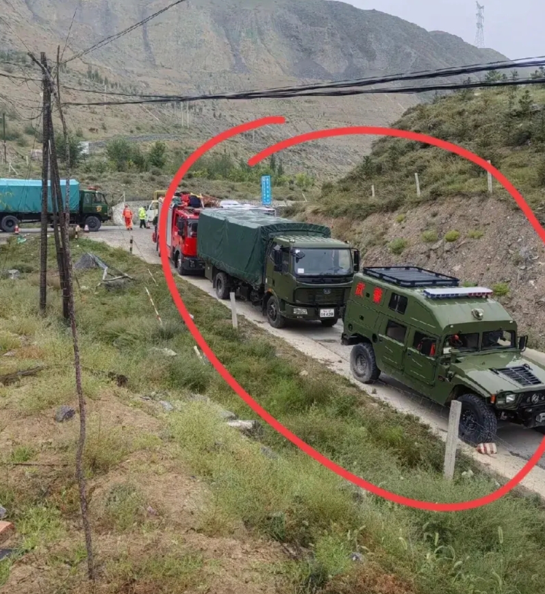尖扎黄河特大桥事故,救援现场,武警部队的军绿色车都来了,毕竟救援装备,更高级更专