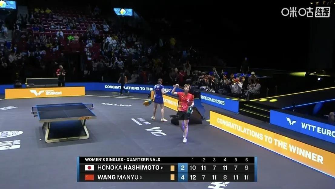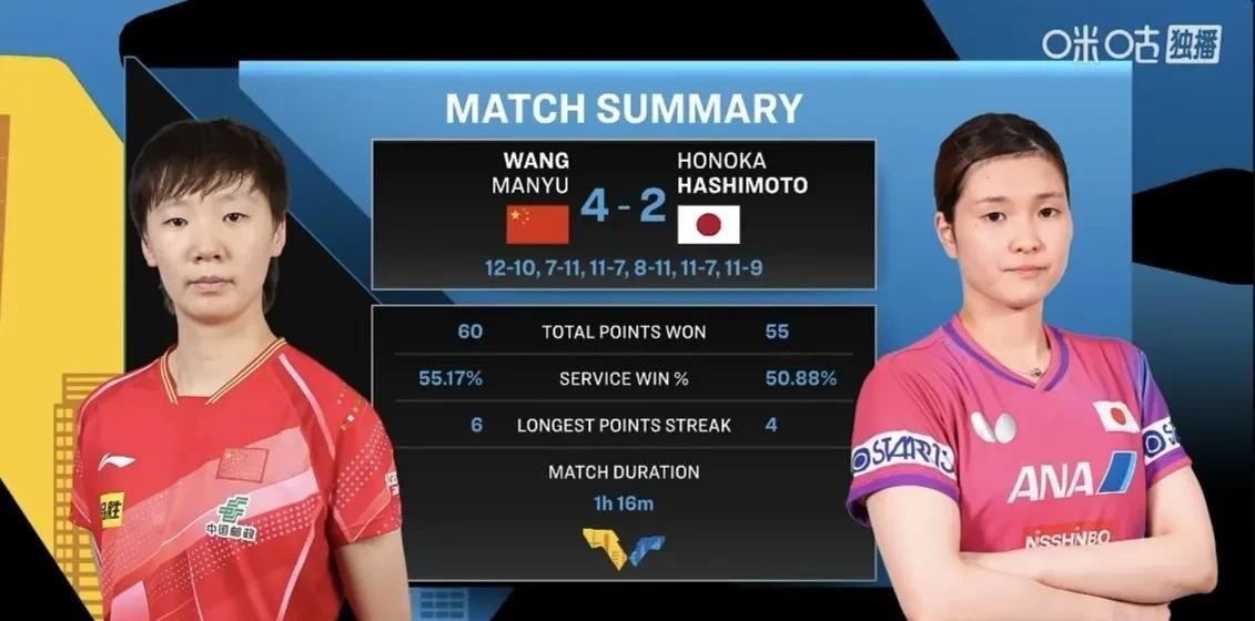 王曼昱击溃桥本帆乃香!栋曼夺冠!王曼昱4-2战胜桥本帆乃香,国乒女单包揽四强,