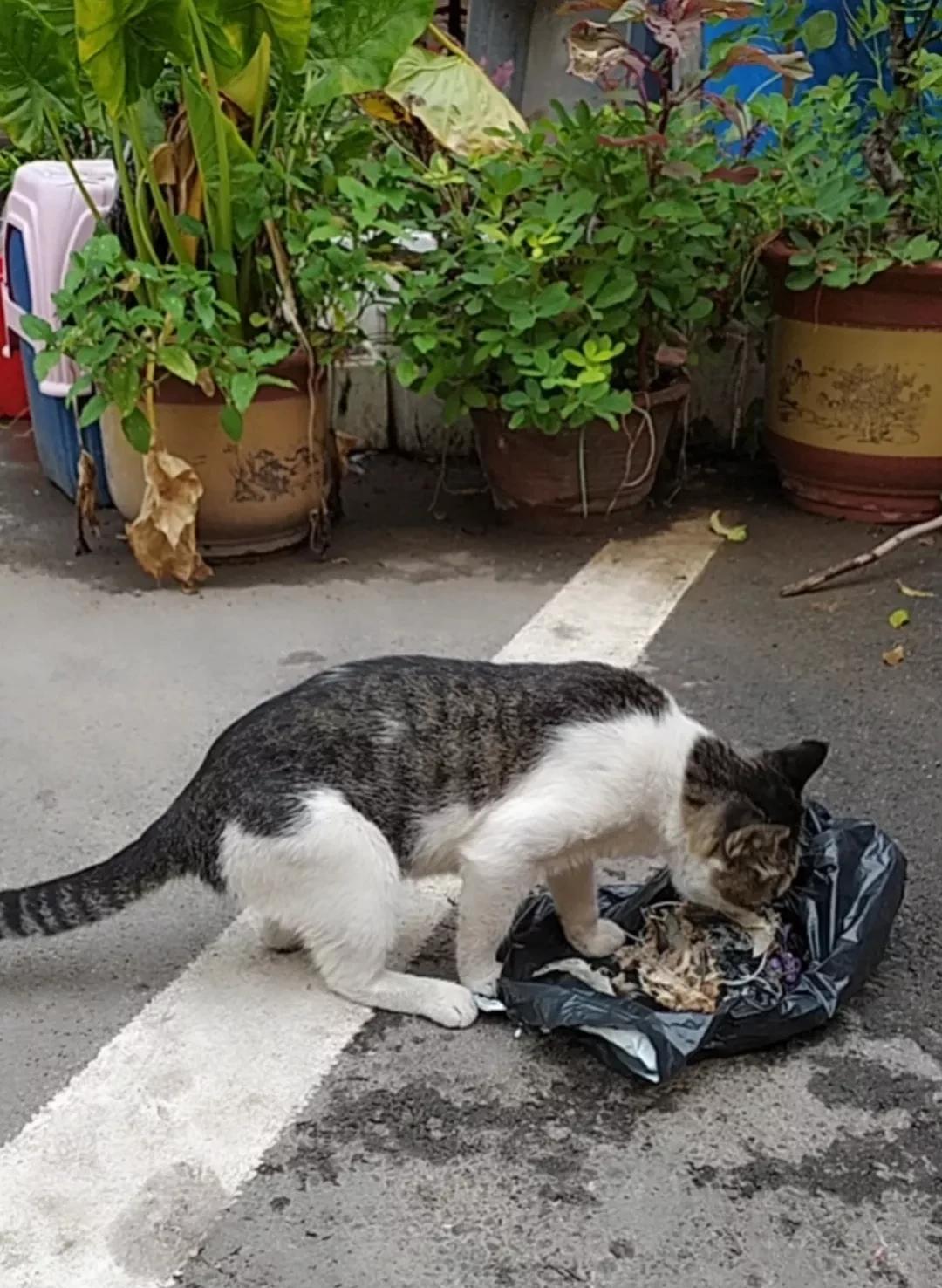 闺蜜去了外地,需要两天才能回来。她家的猫咪被她关在门外,闺蜜嘱咐我这两天一定来给他们家的猫咪送饭送水,至少每天一次。我在家里面给猫咪准备了一些煮熟的鱼和水。好在闺蜜家并不太远。我来的时候,猫咪蹲坐在门口,它当然认识我。看到我的时候非常开心的喵喵叫着扑上来,一看它的样子就饿的两眼发光。我一边拍拍它的头安慰它,一边把带给它的饭放在地上,这是我给它煮的鱼,猫咪好开心啊,它一边吃嘴里面一边喵喵喵说着开心的话。我想,即便他的老板不在家。有我给它做的这顿丰盛的饭,它也会吃的很饱很开心的。这只猫咪有十几岁的年龄了。今年夏天得了一场大病,差点挂了。好在是它的主人,我的闺蜜每天给它吃鸡蛋。吃鱼,因为吃的好好不容易才把这条小命保了下来。我记得去年冬天的时候,它还胖的像个油炉子。今年夏天瘦的像个皮条。哎,不管怎么说,好在是它还活了下来。这是一只大公猫,虽然瘦成这样,老成这样。但是还不耽误他在外面的三妻四妾,只愿他悠哉一点,保住他这小猫体吧。