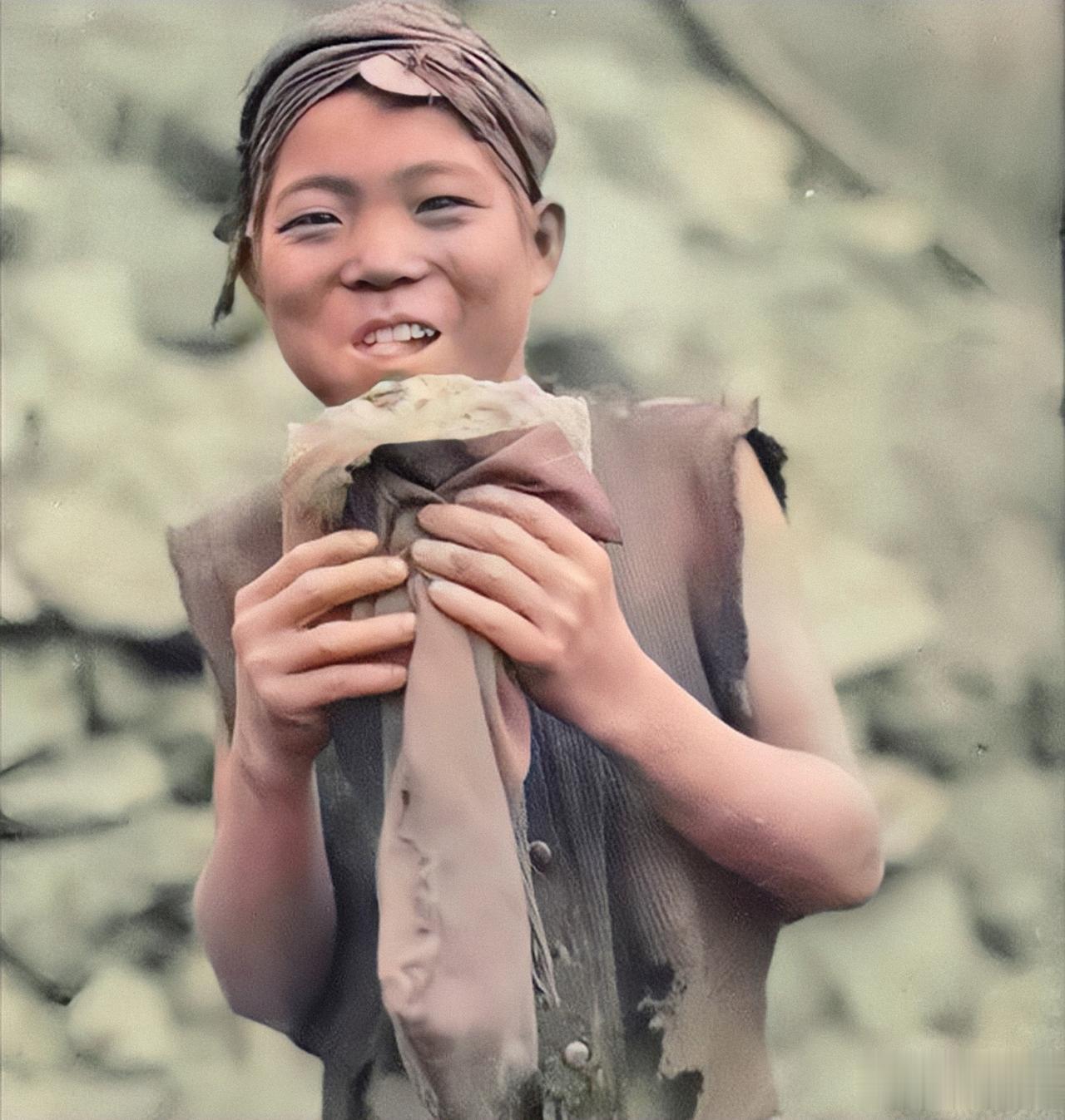这名衣衫褴褛,拿着大饼的男孩名叫何照庭。他是广东韶关市乐昌县某一处官办煤矿里的一