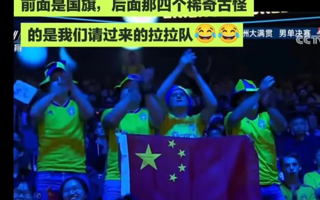 中 国女人就是聪明! WTT欧洲大满贯看台上出现了可笑的一幕,一生要强的中 国女人以不变应万变,让几个瑞典小丑瞬间化身为中 国啦啦队。 观看比赛的网友应该有发现,欧洲大满贯看台上有些穿yoⅡow衣服的瑞典人,听说他们是赌 球的,所以押注的那方赢球他们会兴奋的起身鼓掌。 让他们没想到的是前面两个要强的中 国女人,宁愿不看比赛也得把国旗高高举起。此时此刻的画面很搞笑,前面是国旗,后面是几个二哈啦啦队。 说实话,就佩服举国旗这两个女人,以不变应万变,一面国旗胜过千军万马,遗憾的是没看到本尊。