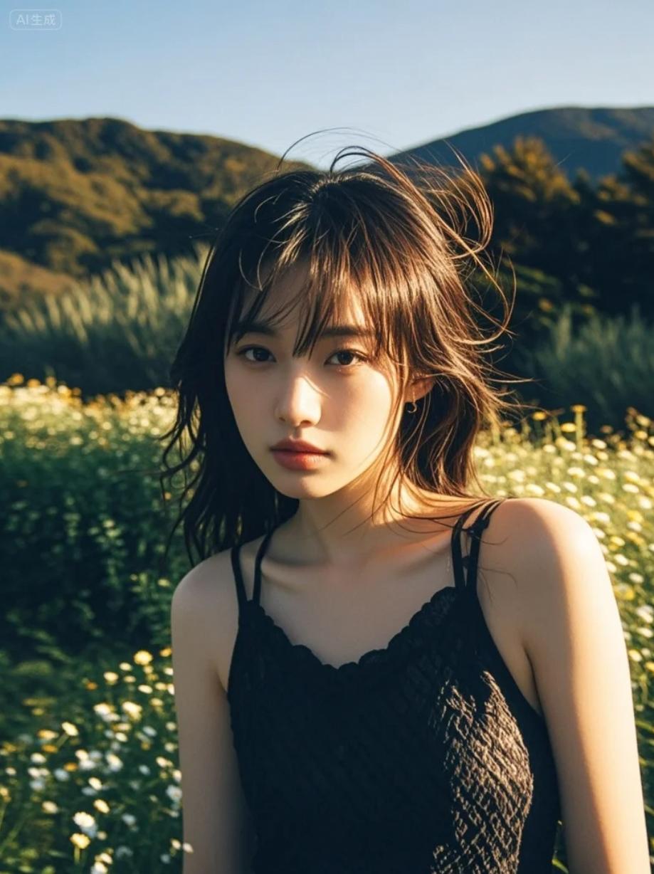 美女望向镜头,那一眼仿佛穿越了所有喧嚣与距离!