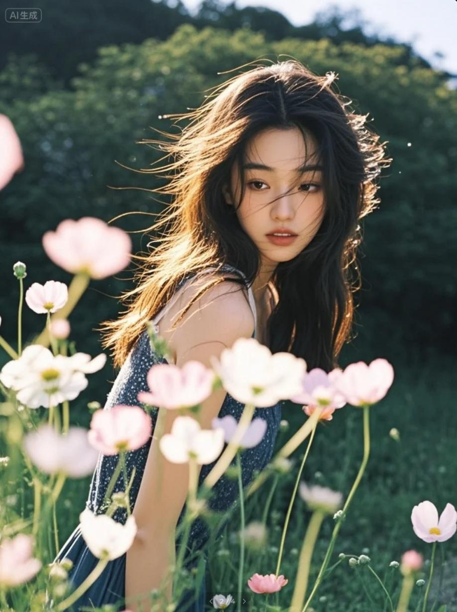 美女望向镜头,那一眼仿佛穿越了所有喧嚣与距离!