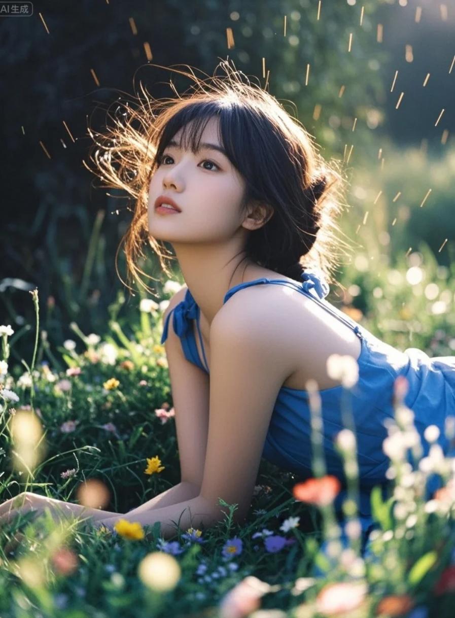 蝴蝶停在她肩头,仿佛她本就属于这片幻境。