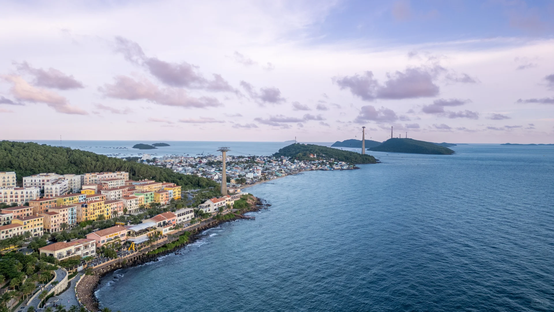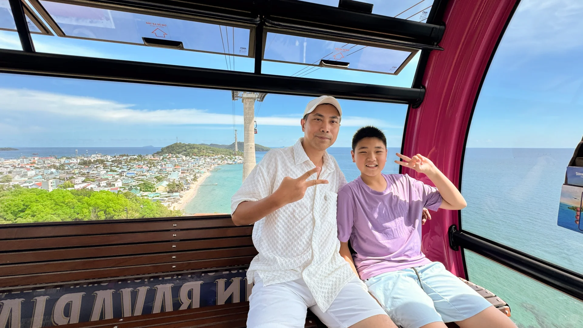 长达 7899.9米 的跨海缆车,单程20多分钟,从香岛飞向富国岛,脚下是碧蓝海水和点点渔船,像在空中旅行 🌊✨。