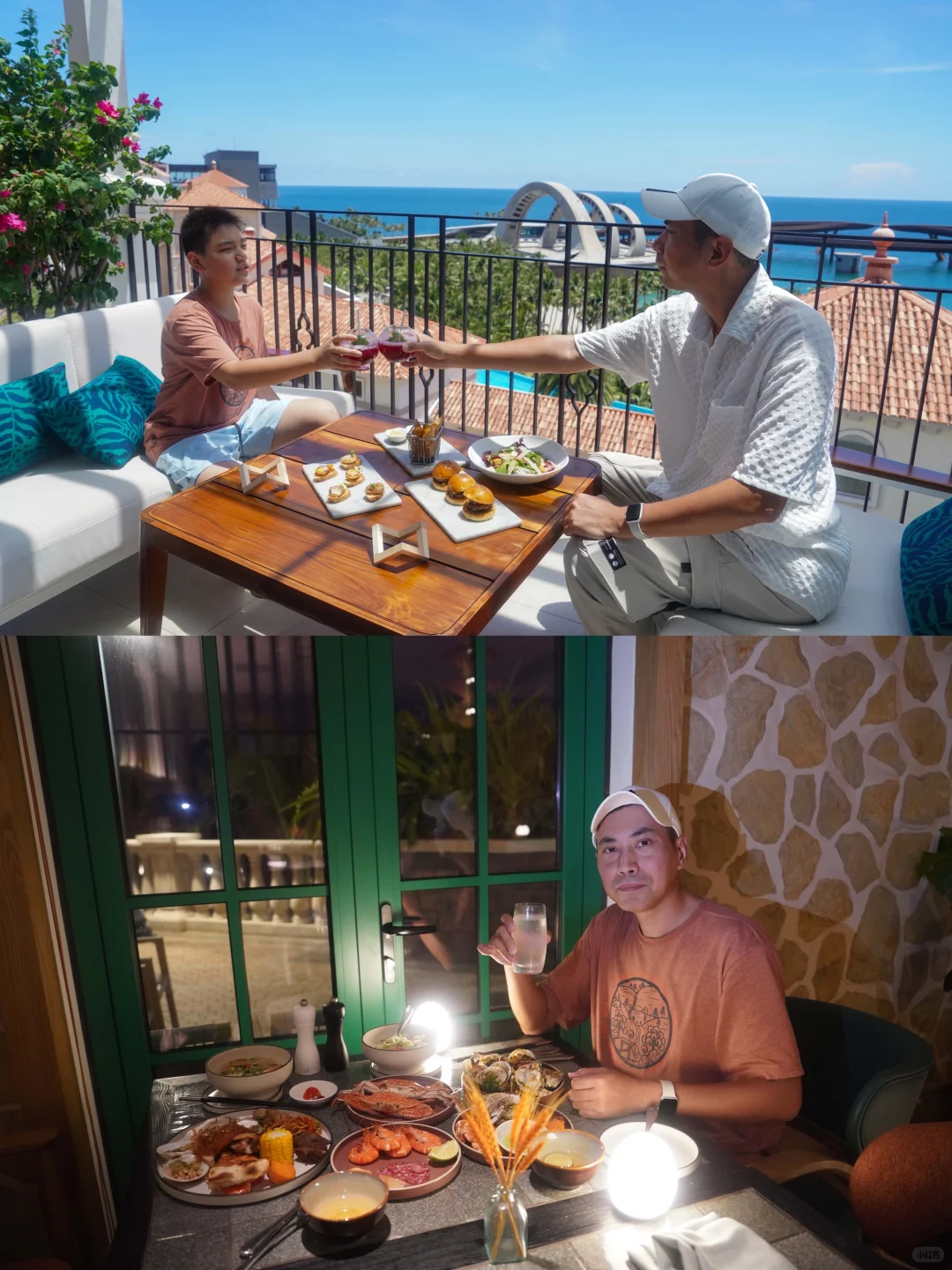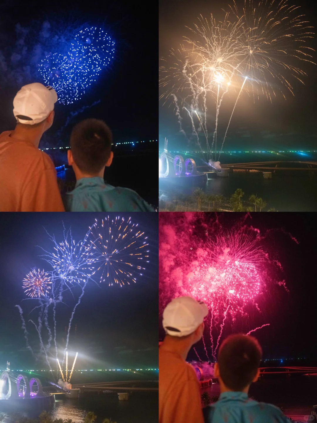 * 我们海景房间,阳台直面吻桥,躺着就能看烟花