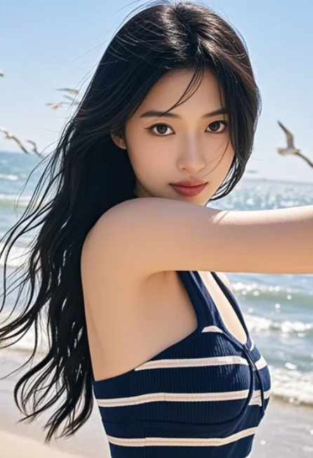 美女望向镜头,那一眼仿佛穿越了所有喧嚣与距离!