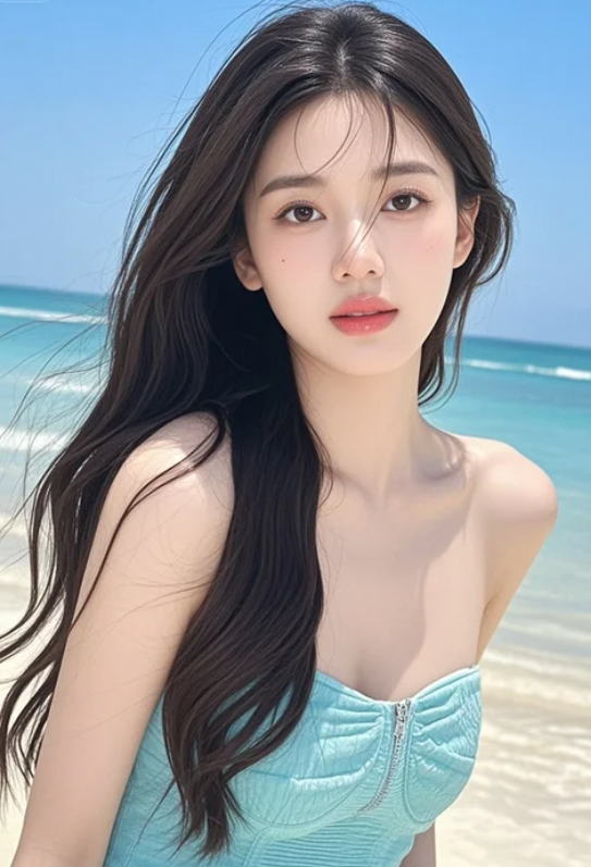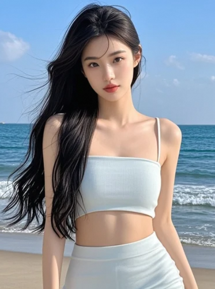 长发+海景,这氛围感给几分?